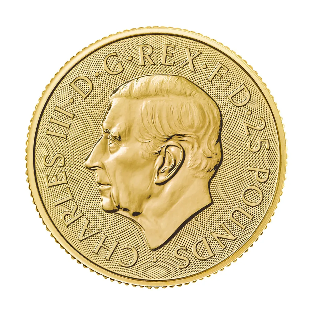 イギリス 2024 チャールズ3世 ブリタニア 25ポンド 1/4オンス 地金型金貨 【1枚】 (コインケース付き)