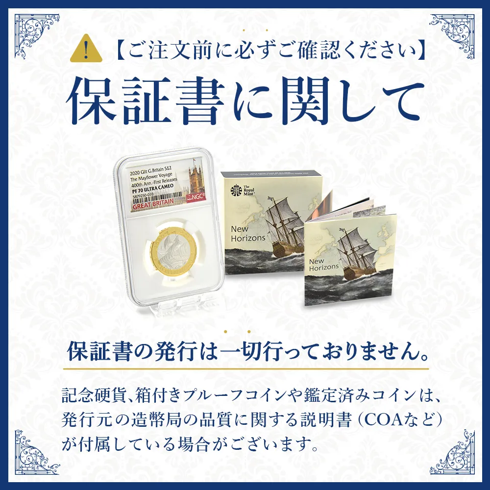 古代以来、英国人の心のよりどころとされてきたブリタニア像。17世紀の英国コイン界におけるデビューは、その後歴代王朝のためのコイン上で快進撃を続けることになるこの永遠のヒロインの運命を決定づけました。20世紀以降のブリタニアの活躍には目を見張るものがありますが、中でも1987年に初登場となったブリタニア地金型金貨は、この種のコインの最高傑作であるばかりか、ブリタニアを描く英国貨幣の代表作として現代のスタンダードを確立しています。毎年発表される金貨・銀貨を含めた多彩なラインアップは、永遠の主題としての真価を発揮する一種のみのデザインによって統一されており、コイン上における英国のもう一つの顔としての役割を果たしています。今回ご紹介させていただくコインは、前英国王エリザベス2世の治世末期から2023年初頭まで発行されていたブリタニア地金型金貨の限定版です。現在、表面の肖像は新国王チャールズ3世の公式第1肖像に置き換えられていますが、当コインには非常に人気の高かった「エリザベス2世の第5公式肖像」が見られます。女王の頭上には、19世紀前半の英国王ジョージ4世ゆかりの宝飾品「ステートダイアモンドダイアデム」が煌めいています。上から見ますと僅か19センチ程度のサークレットの周囲には1333個ものダイアモンドとイエローダイアモンドが所狭しとちりばめられていて圧巻です。サークレットの中央にドーム型の本体を挿入しますと王冠になるこのダイアデムはエリザベス2世お気に入りの宝冠として、存命中はメディアに登場する機会が最も多く、流通貨を含めた英国コインのための公式肖像としては第3肖像と第5肖像に描かれていたために強い印象を残しました。「女王の時代に英国は繁栄を極める」というジンクスが残っていますが、エリザベス2世治世下の1987年に発表されたこのブリタニアのデザインは、それから37年の時を経た現在もなお英国地金型コインの最高峰としての存在感を発揮しています。現代ロイヤルミントを代表するデザイナーフィリップ・ネイサンが創造したこのブリタニアの立像を描くデザインは、波打ち際に佇む永遠のヒロインの美観を最大限に引き延ばした大作でもあります。そして今回ご紹介のコインは、エリザベス2世の治世下に発行された最後の500点のうちの一枚に該当する世紀の逸品であり、記念コイン的な性格ゆえに高鑑定結果が付されている珍品中の珍品です。女王の時代最後の一枚を手に、古代ローマへの憧憬を胸に抱く格別な贅沢をご堪能ください。