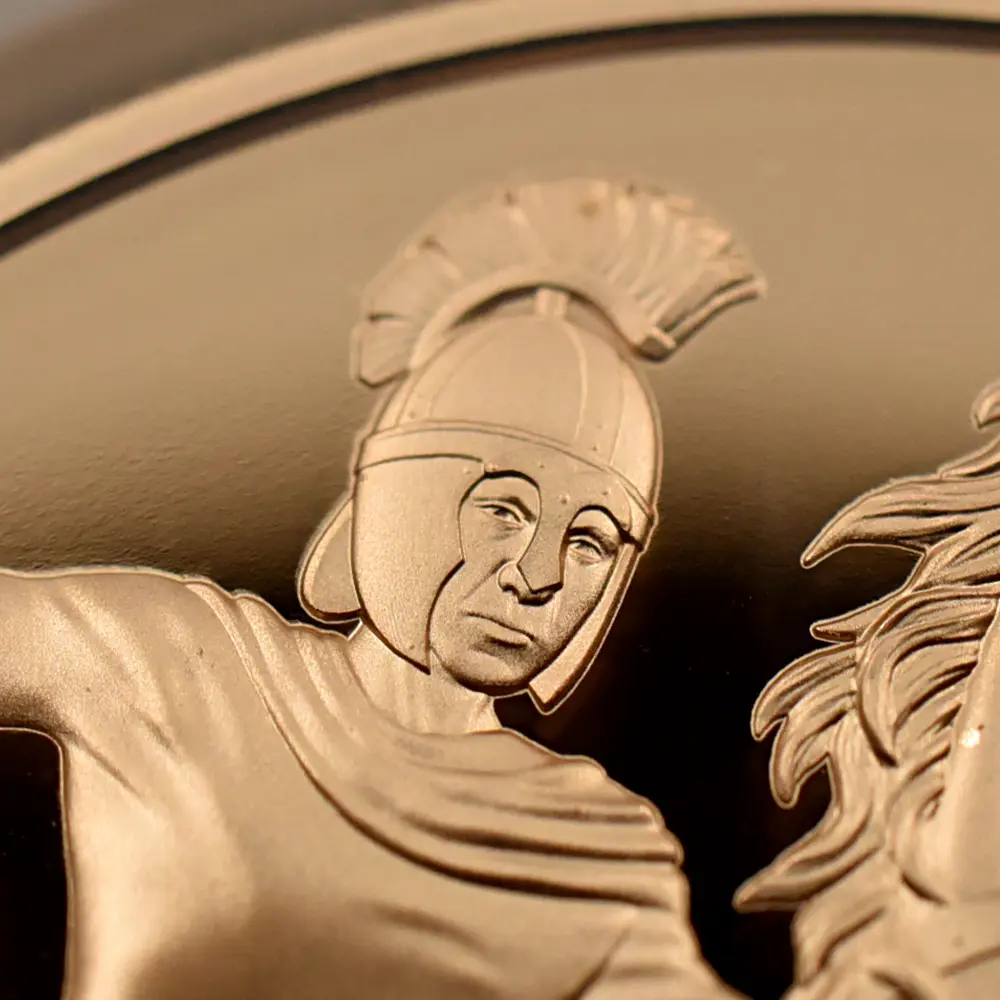 現在の英国王太子夫妻であるケンブリッジ公爵夫妻の長男として2013年に誕生したジョージ王子。英国ロイヤルミントは王子の誕生5周年を記念して、後世に残すに相応しい傑出したモダンコインを創造しました。裏面に「聖ジョージの竜退治」の最新版を描くこの斬新な作品は、未来の英国王の誕生5周年を記念するに相応しいものであり、何よりも高貴な人物が生涯にわたって果たすべき義務を想起させます。この点については、王子の曾祖母であり、2022年9月に崩御されたエリザベス2世の70年間に及んだ献身的な活躍がまず人々の脳裏に焼き付いていることでしょう。女王の国家に対する偉大なる忠誠心は、その後、現国王チャールズ3世から長男のウィリアム王太子へと継承され、将来的にはジョージ王子へと受け継がれるに違いありません。また裏面の主人公である古代ローマ時代の殉教者である聖ジョージが偶然にも王子と同じ名前を共有する歴史上の人物であることも極めて興味深い点です。英国貨幣の永遠のテーマとして代々受け継がれている「聖ジョージの竜退治」の意匠ですが、貨幣界への登場は比較的遅く、19世紀前半に導入された新たな貨幣改革の一環として発表された時が始まりです。その時のオリジナル版「聖ジョージの竜退治」の作者は、当時のロイヤルミントを代表する彫刻家であったウィリアム・ワイオンと人気を二分した偉大なる芸術家ベネデット・ピストゥルッチでした。ナポレオン戦争後の英国貨幣界に彗星の如く姿を現し、時を待たずして頭角を現した偉大なる才人ピストゥルッチ。ロンドン社交界の人士の庇護の下に実力を発揮したこの気鋭のイタリア人彫刻家がこの作品を発表したのは1817年のことでした。ナポレオン戦争後の混迷を極める英国経済再建を目指して推進された貨幣改革の最中に発表されたこの作品は、同戦争の終盤戦に当たるワーテルローの戦いでイギリス軍を勝利に導いたウェリントン公爵を想起させる像としても人気を集めます。数ある出品作の中からこの作品を選び出したのは、ピストゥルッチをイタリアからロンドンに招聘した当時のロイヤルミントの主任、ウェルズリー・ポールその人でした。コインのためのこの不朽のデザインが、ピストゥルッチ自身によるカメオ細工から影響を受けた作品であることは意外と知られていない事実かも知れません。カメオ細工版の「聖ジョージの竜退治」はスペンサー伯爵夫人の依頼によって制作されたものでしたが、夫人の夫、スペンサー伯爵が王室からガーター勲章を授与される際にその装飾品として用いられるために制作されたものでした。オリジナル「聖ジョージの竜退治」はその後、ソブリン金貨を始めとする歴代イギリス国王のための各種コインの主要なデザインとして受け継がれ、200年以上もの長きにわたって英国コインデザインの最高傑作の一つとして、今日なおも愛され続けています。