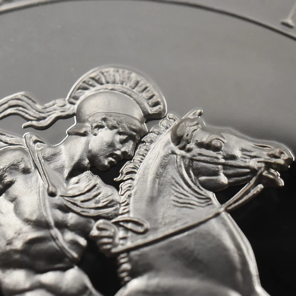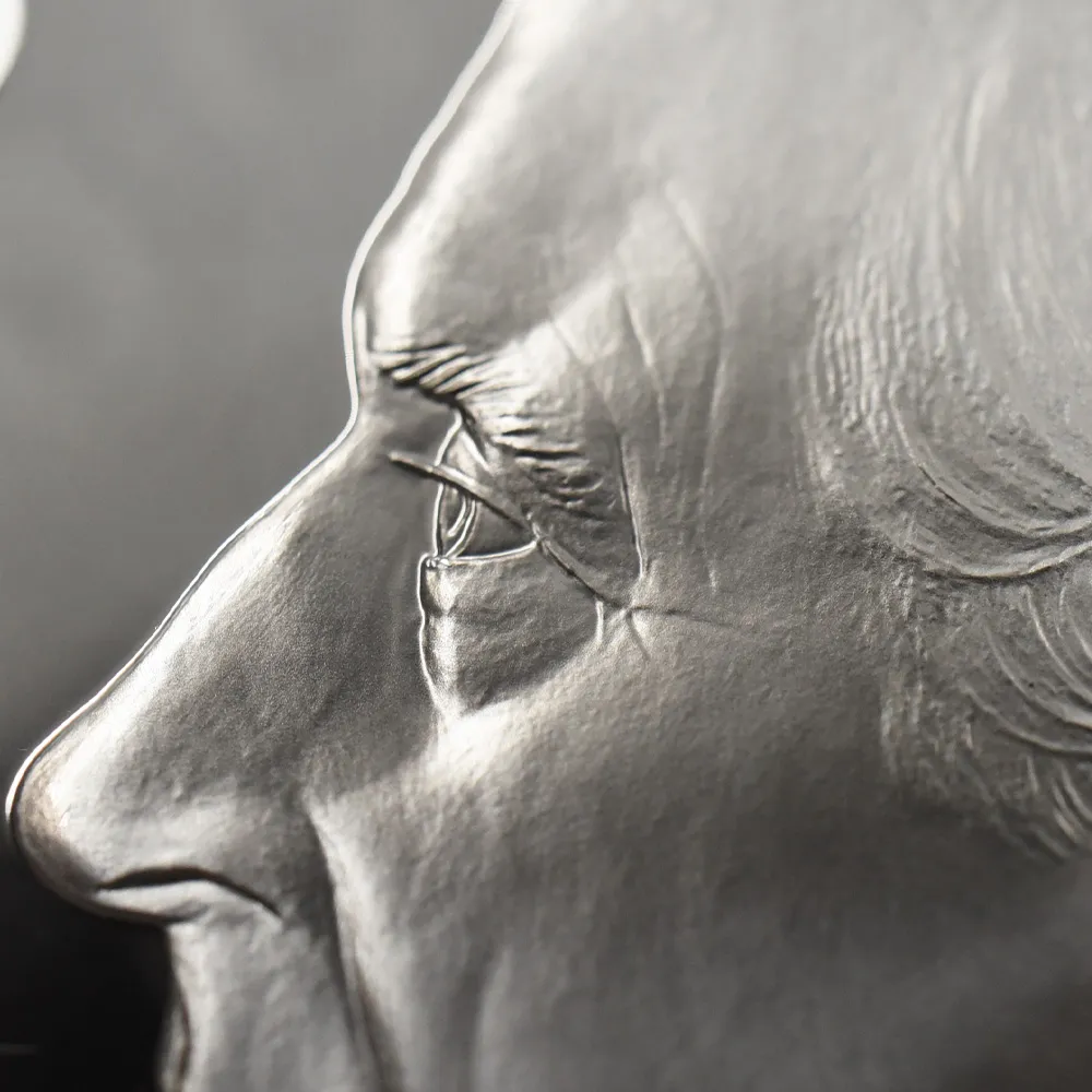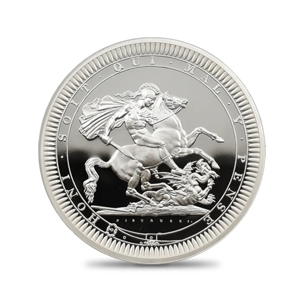 2022年9月8日のエリザベス2世の崩御に際して英国王位を継承した新国王チャールズ3世。「偉大なる彫刻家コレクション」の第4弾「ペティションクラウン」は、新国王を迎えたばかりの英国貨幣界が、モダンコイン屈指の人気コインシリーズの最新作として世に贈り、絶賛されました。それに続いてこの度解禁されることとなった第5弾は、ワイオンと並んで19世紀初頭の英国貨幣界を牽引した偉大なる彫刻家、ベネデット・ピストゥルッチ(1783-1855)の最高傑作「聖ジョージの竜退治」に捧げられます。ナポレオン戦争後の混乱の中、底知れぬ才能を秘めたこのイタリア人芸術家は、当時のロイヤルミント主任の招きに応じてイングランドに移り住み、そこを終生の地としました。ピストゥルッチの卓越した技量は当時のロンドンの上流階級の顧客層の愛顧を得て広まり、世に出たばかりのワイオンの職人技と双璧を成すほどに高く評価されていました。しかし二者の作風そのものは比較できない程に異なるものであり、また個性的でもありました。偉大なるコイン彫刻家一族の末裔として世に出たワイオンは生まれながらの職人肌の彫刻家であり、その仕事は非常に着実で安定していたと言われています。一方、ピストゥルッチはと言いますと、どちらかと言うと天才型の芸術家で、閃きに満ちた底光りするような強烈な作風を特徴としていました。ピストゥルッチが「聖ジョージの竜退治」の意匠を創造した頃の英国社会は、未だナポレオン戦争後の経済的荒廃から完全に脱却できていなかったものの、ロイヤルミントを中心とする英国貨幣界は金本位制を主軸とする新たな貨幣改革を推進する兆しを見せ始めていました。そのような社会背景の下に、一連の新たな貨幣の発行が急がれましたが、それらの新貨幣のデザインの一つとして採用されたのがこのピストゥルッチの「聖ジョージの竜退治」でした。古代ローマ時代の伝説の聖人ゲオルギウスの竜退治の場面を描くこの意匠は、古今東西の傑作コインの主題の中でも驚異的な人気を誇るものであり、同コレクションの第5弾として相応しいものであると言えます。また、ウィリアム・ワイオンとトマス・サイモンに続いて、ベネデット・ピストゥルッチの作品が選定されたことによって、歴史的コインコレクションとしての意義を強調しています。槍で悪の象徴であるドラゴンを退治する馬上の聖人の颯爽たる姿を、英国君主の仮の姿と見なすことも可能です。当復刻版の表面には、2023年5月6日に戴冠式を挙行したチャールズ3世の様式感溢れる「公式第1コイン肖像」が描かれています。コイン表裏に英国君主の威厳を掲げる当コインは、今日まで途切れることなく脈々と受け継がれてきた英国王室の未来永劫の安泰を象徴する新時代の傑作であると言えます。