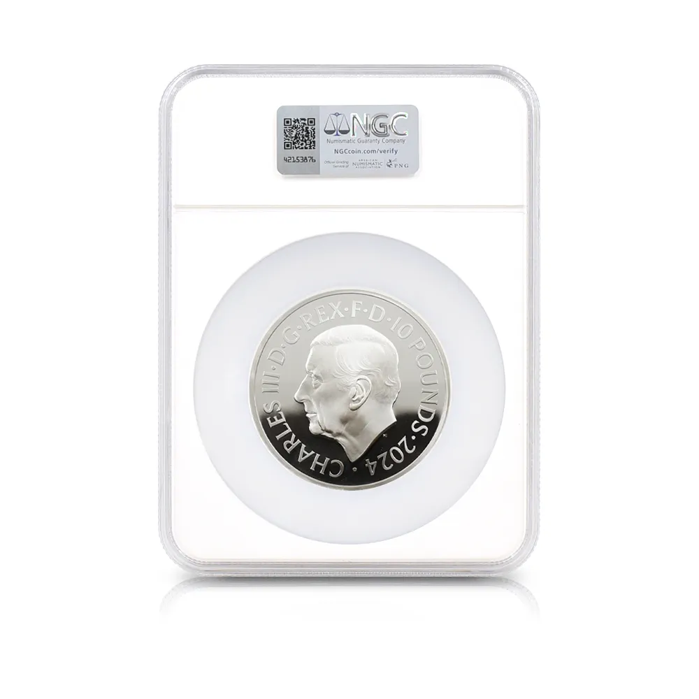 2024 チャールズ3世 ピストルッチ作聖ジョージ竜退治 10ポンド5オンス銀貨 NGC PF69UC チャールズ3世ラベル 箱付き