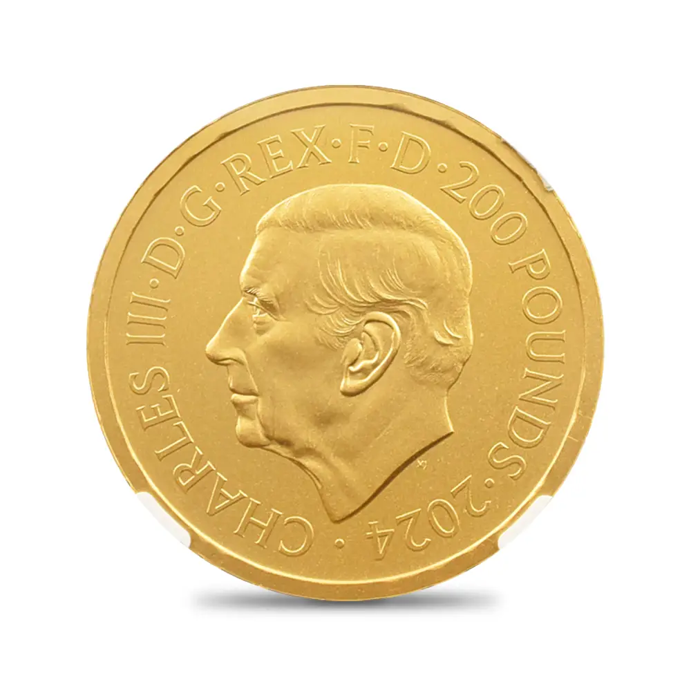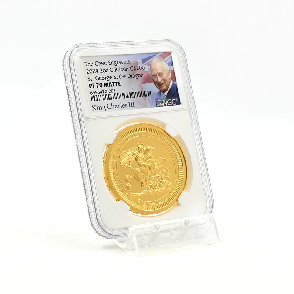2024 チャールズ3世 ピストルッチ作聖ジョージ竜退治 200ポンド 2オンス 金貨 マットプルーフ仕上げ NGC PF70MATTE 箱付き