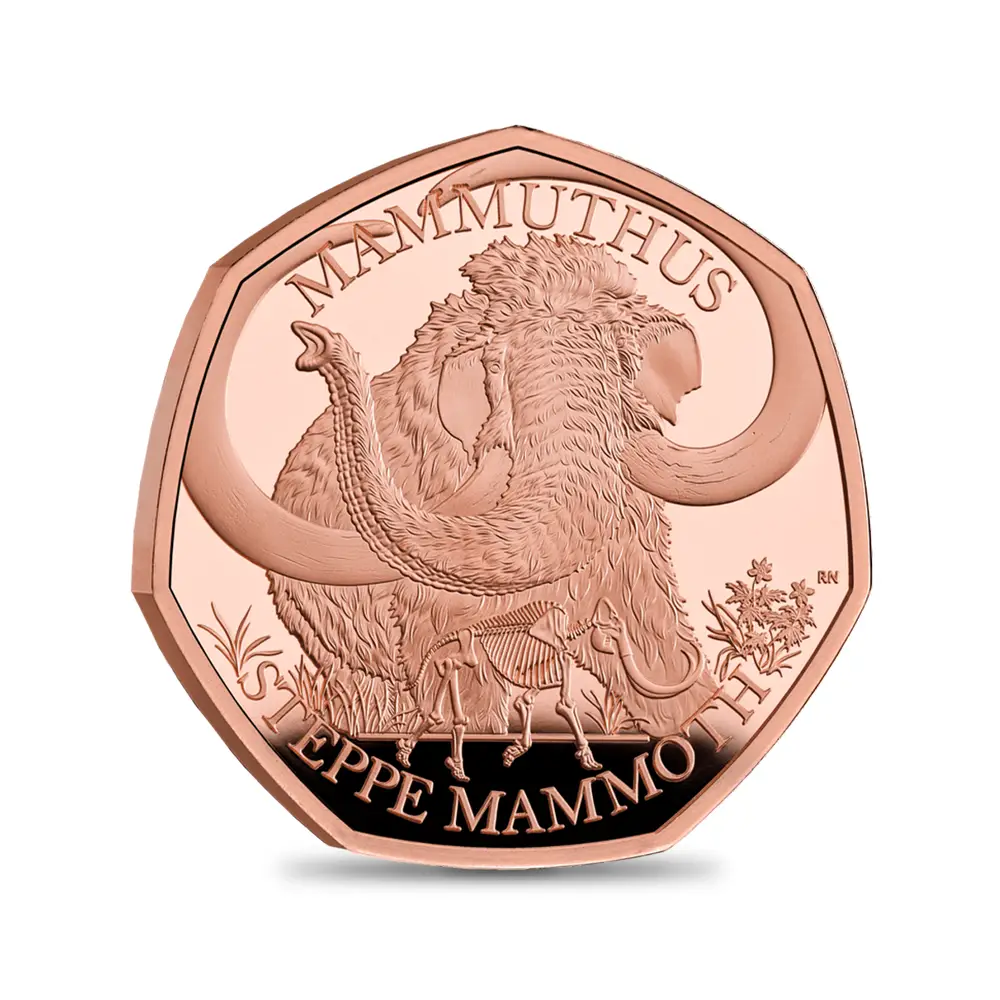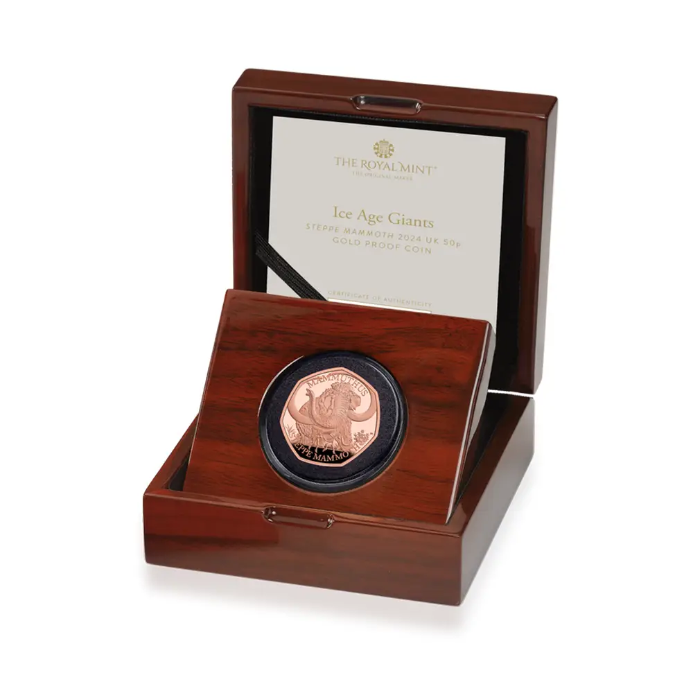 2024 チャールズ3世 「地球の物語コレクション」・氷河時代の巨獣たち 第1弾 ステップマンモス 50ペンスプルーフ金貨 未鑑定 箱付き【ご予約承り品】