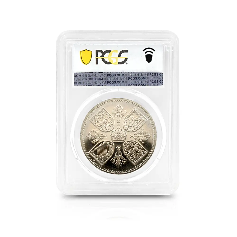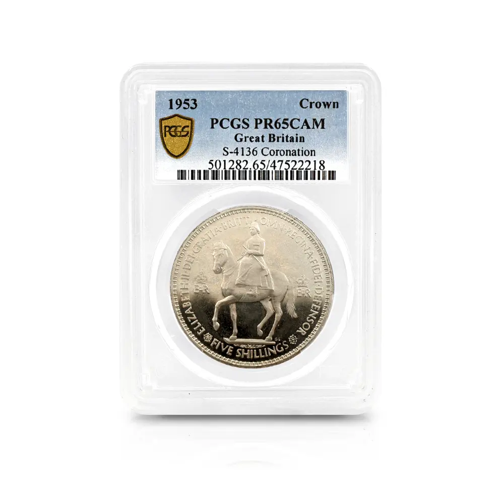 そしてコイン裏面にはイギリス連邦に属する4カ国の国章と共に、それぞれの国家を象徴する花が描かれ、中央に英国王位を示す王冠、さらにコイン下部には戴冠式の年を示す1953の数字が刻まれています。新女王の戴冠式を寿ぐ祝祭感で満たされた当5シリング貨は、その後半世紀以上にわたって英国民を導き、齢を重ねて存在感を増す英国女王の若き日の栄光の軌跡を永遠に刻むアニバーサリーコインの極致です。
