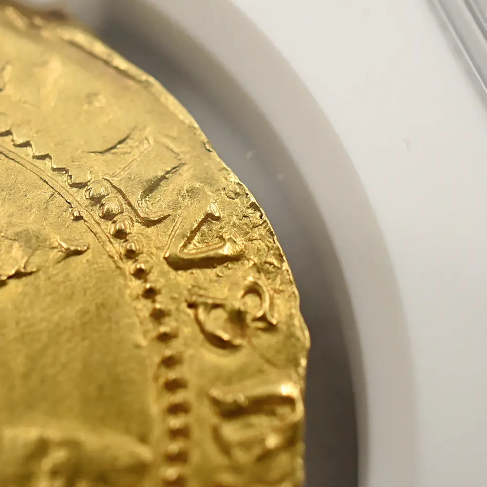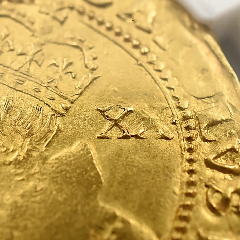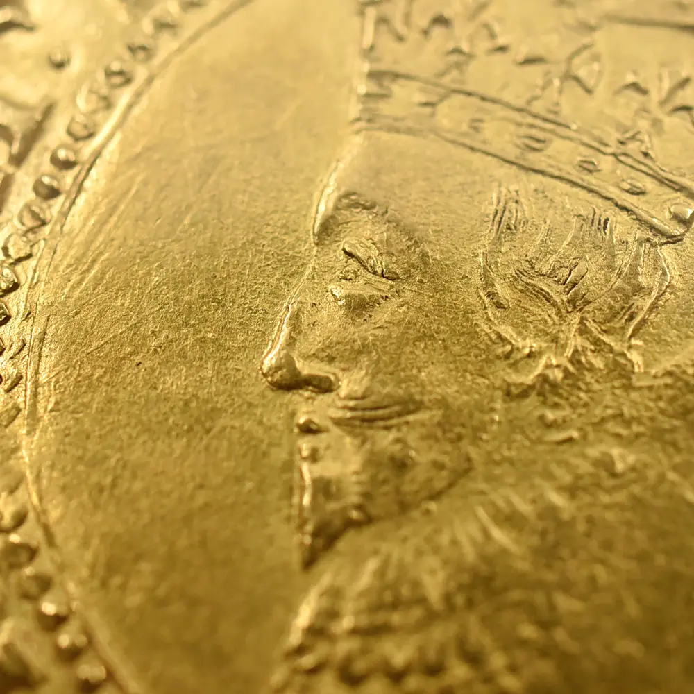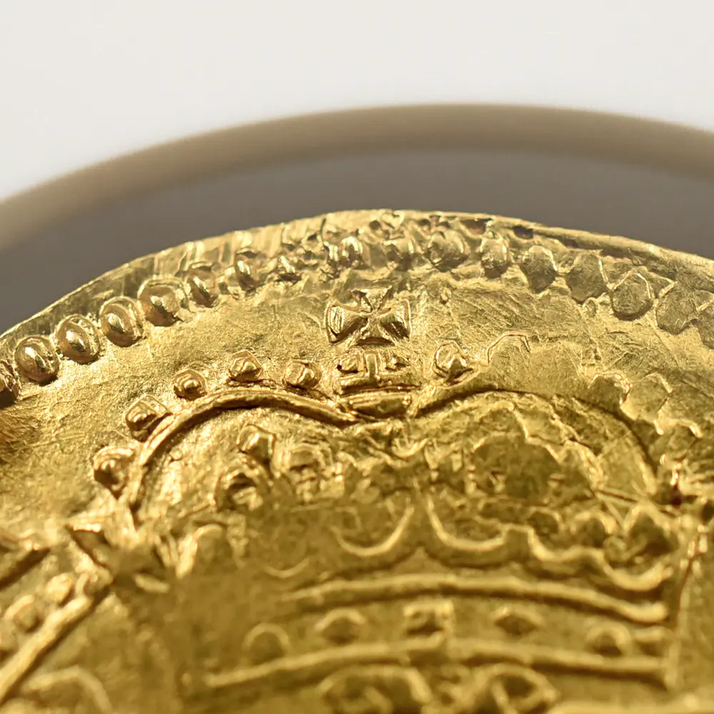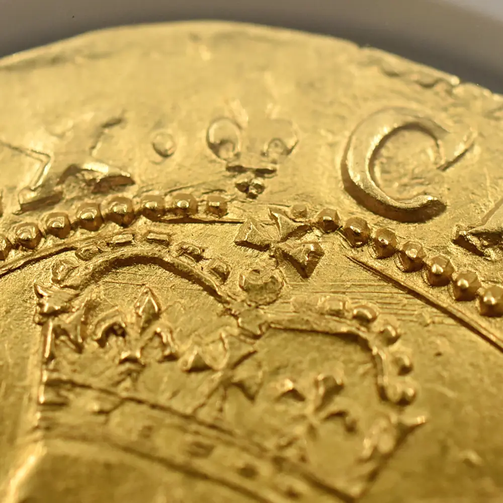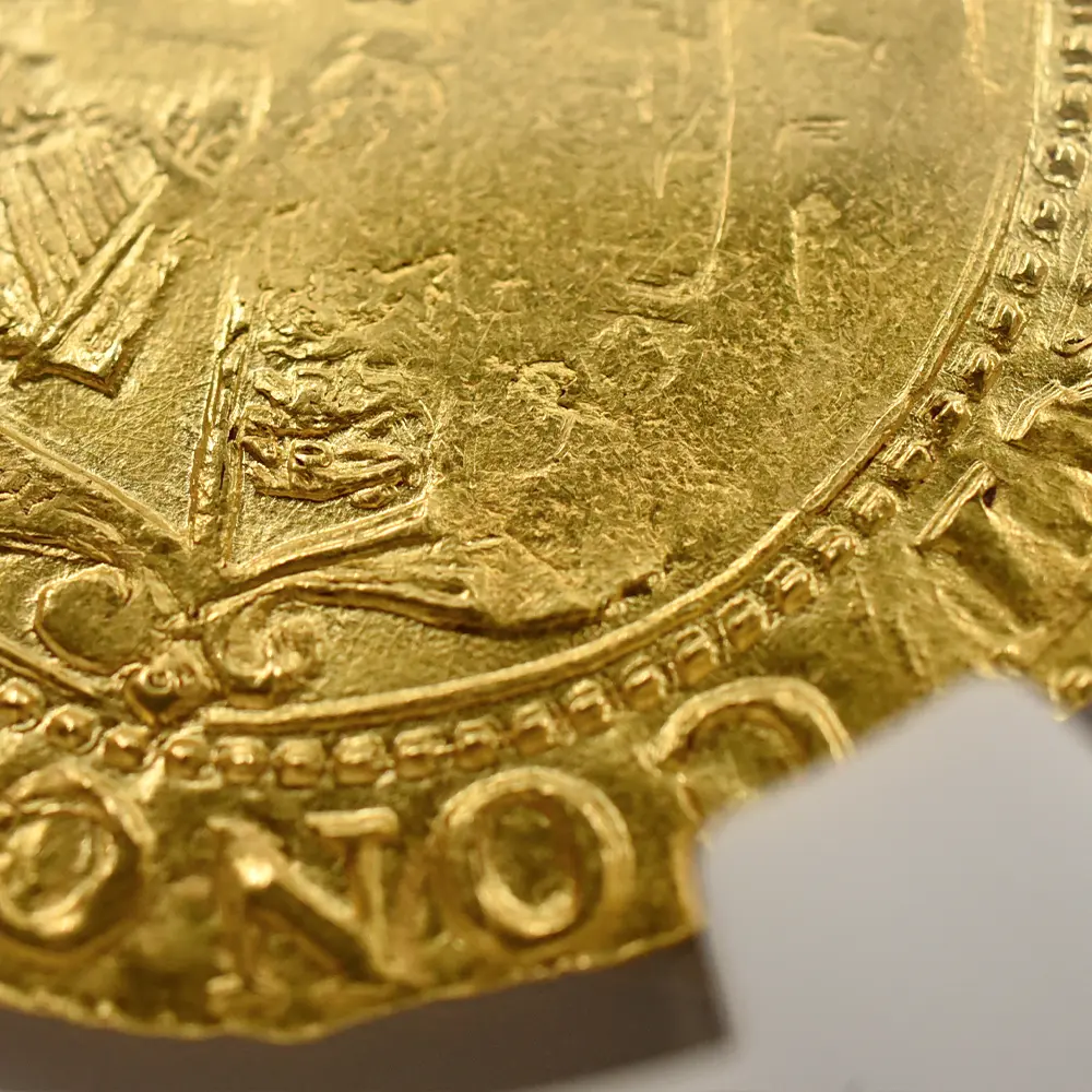 長子チャールズ2世のドラマティックな王政復古によってチャールズ1世が名誉を回復するまでのイングランドの政局を清教徒革命と呼びますが、英国史上唯一の国王不在の時代であった共和国の政治に馴染めなかったのは誰よりも英国民たちでした。次第にチャールズ1世の時代を顧みるようになった当時の英国は、チャールズ2世による王政復古のあと一度も共和政を採用しなかったことがその証拠ではないでしょうか。チャールズ1世は皮肉にもその死によって英国の未来永劫の王制をより強化し、その伝統は現ウィンザー朝の治世に至るまで奇跡的に受け継がれています。先代ジェームズ1世の治世に誕生したユナイト金貨は、次代のチャールズ1世の治世に受け継がれ、英国ロイヤルミントが発行する主要な金貨として英国貨幣史上に記録されています。イングランド連合王国の成立まではアン女王の即位を待たなければならなかっったものの、その基盤となる同盟関係はジェームズ1世とチャールズ2世の時代の築かれ、現在に至るまで存続している二国の友好関係の礎を構築しました。戦乱の世に英国王位と英国を守り抜こうとした孤高の帝王チャールズ1世の短くも崇高な治世を刻むこのユナイト金貨表面には、在りし日の国王の左向きのポートレートが気高く刻まれており感動を誘います。そして裏面には古風ながらも厳かなイングランド・スコットランド・フランス・アイルランド4国の協調関係を示す純英国的な格調高い盾の紋章と共に、永遠の英国王位をシンボライズする王冠が描かれています。本物のアンティークコインのみにしか見られることの無い時の移り変わりを感じさせる心地よい古色が、この物語の主人公であり、国家のために命を捧げた殉教者でもある国王チャールズ1世の崇高なる遺志を代弁しているかのように見受けられます。