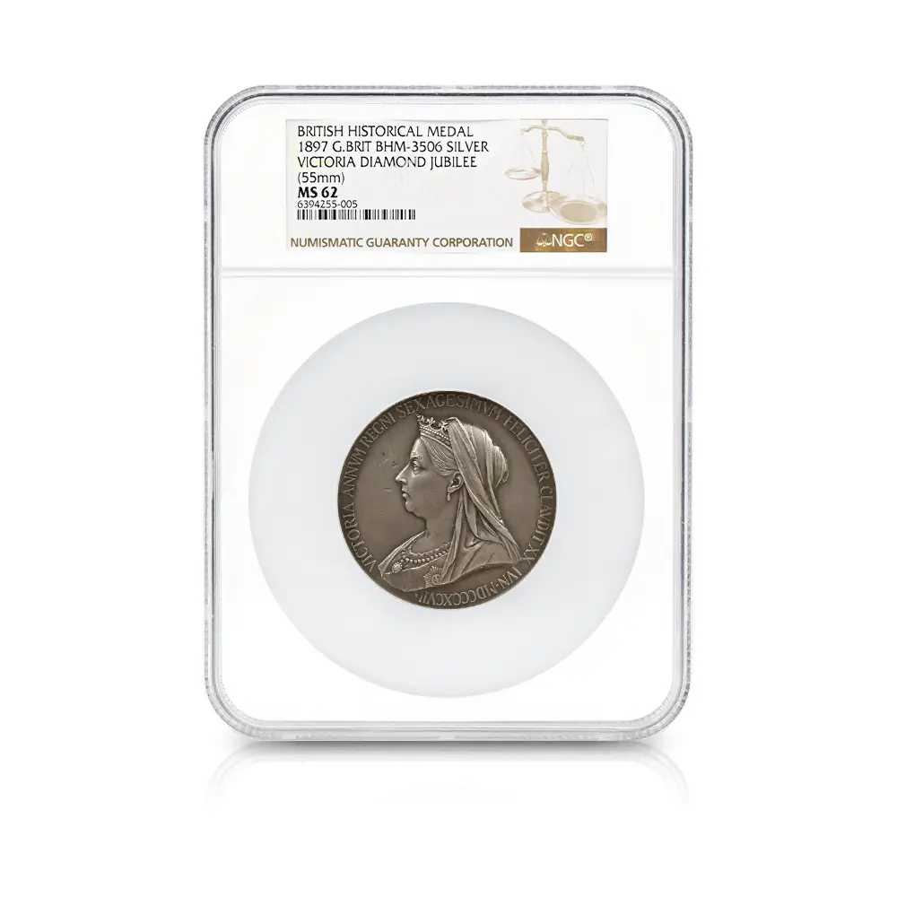 1897 ヴィクトリア女王 オールド(ヴェールド)ヘッド 戴冠60周年記念 ダイヤモンドジュビリー 銀メダル NGC MS62 BHM-3506