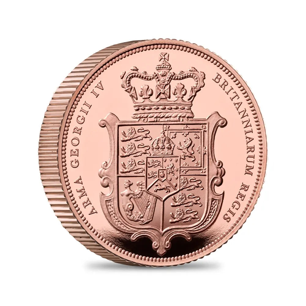ソブリンという名称の下に、500年以上に渡る長い歴史を有するソブリン貨ですが、現代受け継がれているこの名称の金貨は、ナポレオン戦争後の1817年に施行された金本位制に基づく大改鋳時に発行された貨幣の流れを汲むものです。ナポレオン戦争によって混迷を極めていた英国経済を立て直すために考案されたこの新たな貨幣制度によって、イギリスは自身のヨーロッパにおける主導権を回復し、再び対外的な特権を行使するようになります。これはまた後の大英帝国の構築へと繋がり、前世紀から勃興していた産業革命の空前の成功を背景として、イギリスの国力の増強に貢献したと言えます。近代以降も歴代君主の治世を象徴する法定金貨の最上位に位置する格調高いソブリン金貨ですが、今回ご紹介させていただく商品は、英国貨幣界を代表する名貨として知られるソブリン金貨を記念する2種のコインです。そのうちの1枚は、近代ソブリン金貨の代表的デザインとして人気を博した王冠を戴く大型のロイヤル・コート・オブ・アームズを再現するものです。この優れたデザインの創造主は、フランスのコインデザイナー、ジャン・バプティスト・メルランです。今回のリリースが取り挙げるもう一つの傑作は、1817年の初リリース以降、英国ソブリン貨の裏面を代々飾ってきたベネデット・ピストゥルッチの永遠の傑作「聖ジョージの竜退治」です。これら2枚の表面には、既に高評価を獲得している現国王チャールズ3世の「公式第1コイン肖像」が描かれています。現代の名デザイナー。マーティン・ジェニングス氏の描写力の妙技を堪能することのできるこの作品は、現代コイン・ポートレートの新たな傑作として英国貨幣史上に足跡を残しました。22カラットゴールドは通称「ローズ・ゴールド」と称されてコインコレクターから愛されていますが、これら2種は深みのある薔薇色がソブリン金貨ならではの古典的なデザインを際立たせており、時を経てヴィンテージとして、またいつかはアンティークとして代々受け継がれていくに相応しい威厳と美観を備えています。