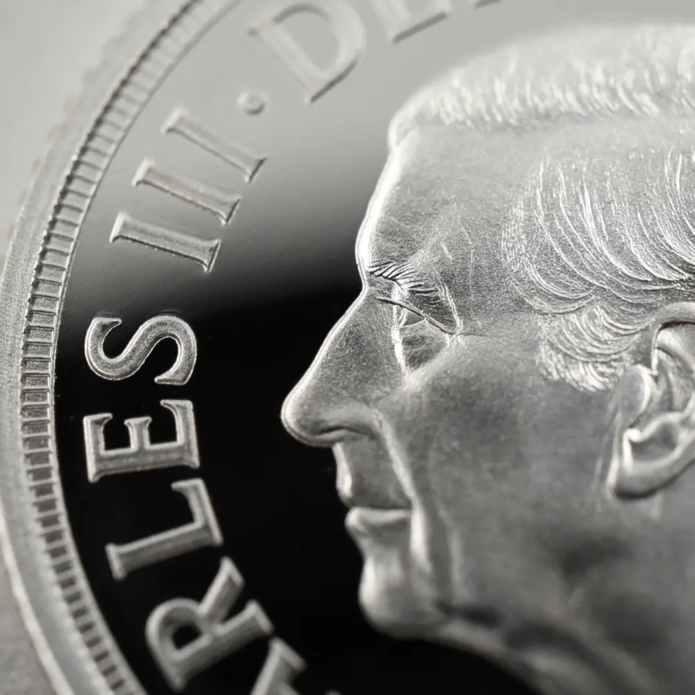 19世紀初頭に奇跡的な復活を果たしたソブリン金貨。その後もハノーヴァ朝の国王を始め、歴代英国君主たちの庇護の下に最上位に君臨する英国金貨としての名声を保ち続けました。中でも1936年に即位した伝説の英国王エドワード8世の僅か11か月の在位期間の後にごくわずかな数のみ発行されたソブリン金貨は、オークション史上最も高値を付けた英国金貨の傑作として、その存在は今日、半ば伝説化しています。今回ご紹介させていただく商品は、2025年度のモダンコインとして本年発表されたソブリン貨の銀貨バージョンです。金貨の代名詞とされるソブリン貨ですが、ここに銀貨のバージョンが誕生したことは稀有な事例として英国貨幣史上に記録されることでしょう。コイン裏面には、19世紀初頭の新生ソブリン貨の誕生と共に産声を上げた英国貨幣デザインの永遠の定番「聖ジョージの竜退治」が刻まれています。近代以降の歴代君主たちのソブリン貨の裏面を代々彩ってきたこの名デザインは、ウィリアム・ワイオンと並んで19世紀前半の英国貨幣界での人気を二分した天才芸術家、ベネデット・ピストゥルッチ(1783-1855)畢生の大作として知られる意匠に他なりません。そしてコイン表面には、2022年の前英国王、エリザベス2世の崩御に際して英国王位を継承した新国王チャールズ3世の「公式第1コイン肖像」が掲げられています。ロイヤルミントの名匠マーティン・ジェニングスによる精緻な表現力を特徴とするこの気高いポートレートは、国王自身の推挙を得て英国貨幣界の新たな顔となりました。表面には君主の肖像、また裏面にはピストゥルッチの「聖ジョージの竜退治」と、至って典型的な2種のデザインを両面に描く当銀貨ですが、英国貨幣ならではの古典美を堪能するのにはうってつけであり、またソブリン貨の本質と今後の英国貨幣界の方向性を明確に示唆する第一級の芸術作品でもあります。