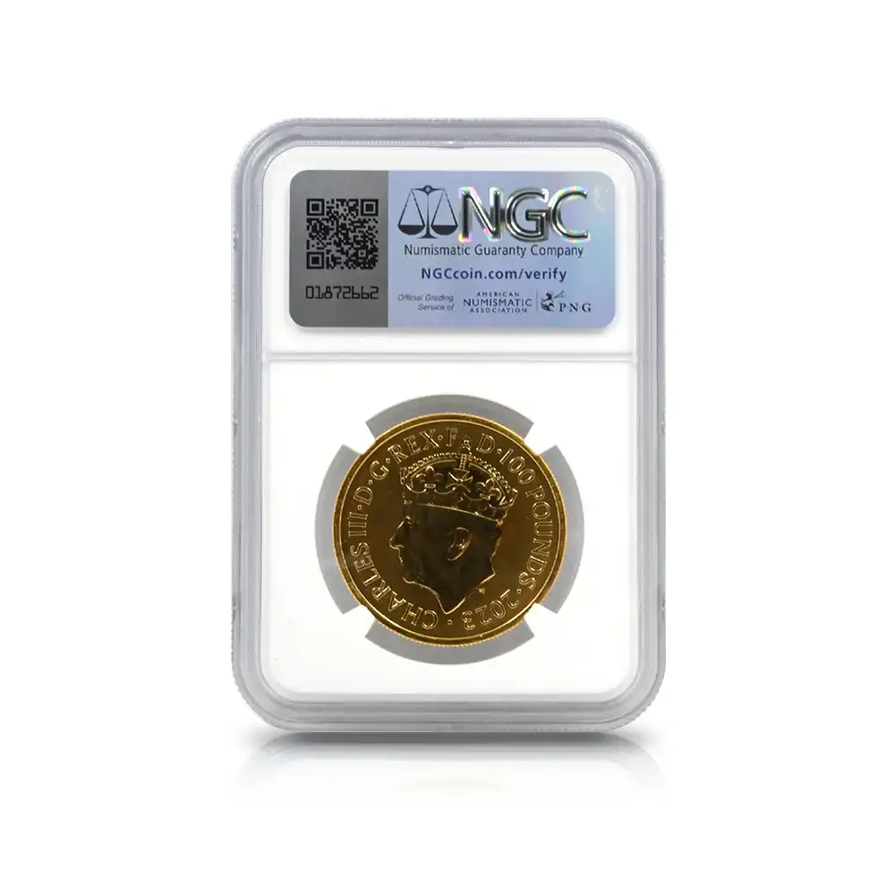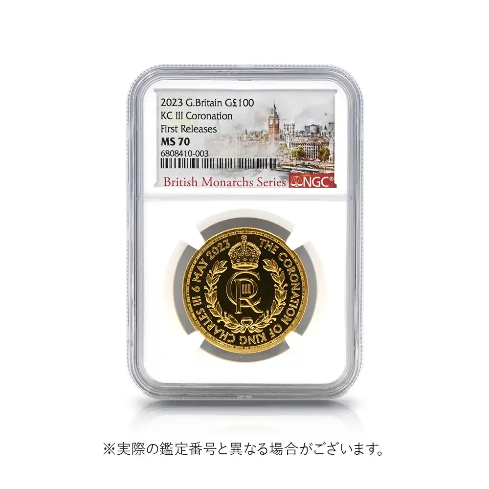 イギリス 2023 チャールズ3世 戴冠記念 100ポンド 1オンス 地金型金貨 ファーストリリース NGC MS70