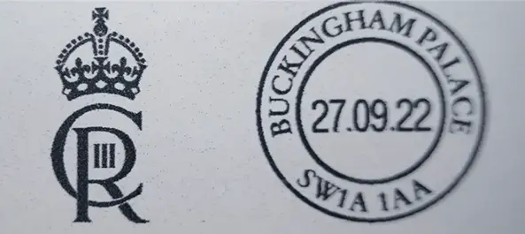 ©郵便物に記載されたチャールズ国王の公式ロイヤルサイファ コイン表面には、2022年9月8日の前国王エリザベス2世の崩御に際して新たにイギリス連合王国の君主となった新国王チャールズ3世の左向きの神々しいポートレートが掲げられています。戴冠式の特別版ということもあり、国王の頭上には至高の英国王位の象徴とされる「聖エドワード王冠」が見られます。この秀逸なポートレートは、現代ロイヤルミント屈指の実力派として知られる名デザイナー、 マーティン・ジェニングスの傑出した創造性が生み出したものであり、国王自身の愛顧を得て最終的に選定されたものとのことです。肖像周囲に刻まれている碑文は、現代社会の多様性を反映する英語とラテン語の折衷によるものであり、王名部分が通常のラテン語での「CAROLUS」ではなく「CHARLES」と刻まれている点が何よりの特徴です。肖像背後の点描による美しい景色は新国王の肖像の美感を強調するのみならず、地金型コインならではの偽造防止対策としての実用性を兼備するものでもあります。そして裏面中央には、新国王の治世初の披露となる国王自身が生涯にわたって所持する紋章「ロイヤルサイファ」か刻まれており、その周囲を美しいリースが囲んでいて壮観です。さらにその外周には、戴冠式挙行の日付「2023年5月6日」と共に「国王チャールズ3世の戴冠式」の文言が連なり、当地金型コインに永遠の記念碑的な役割を与えています。実物資産として有益な地金型コインですが、英国ロイヤルミントがこの一世一代の王室行事である戴冠式の開催を機に世界に贈る当コインは、地金型コインの進化形として今後、絶大なる評価を獲得すること必至と思われます。