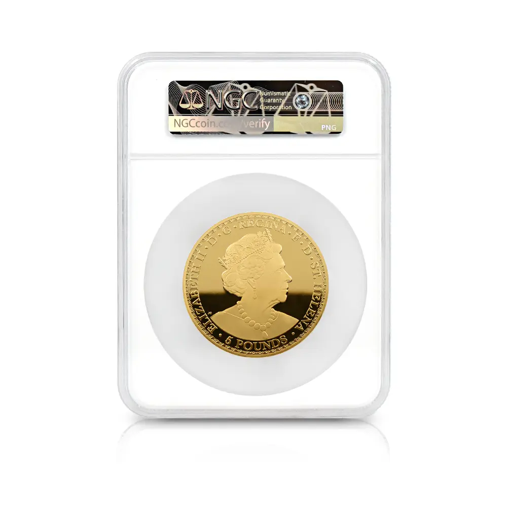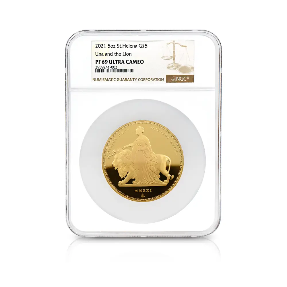 セントヘレナ 2021 エリザベス2世 ウナ&ライオン (ワイオン版) 5ポンド5オンス金貨 NGC PF69UC 箱付き