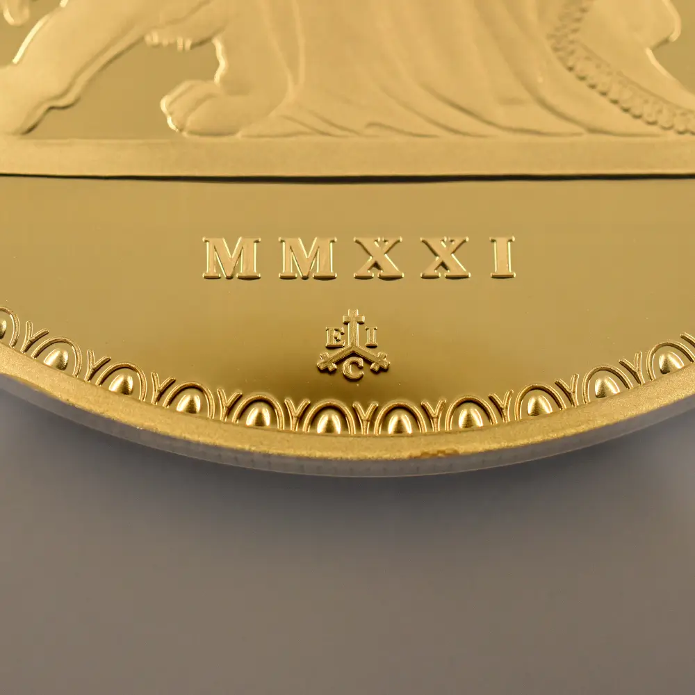 南大西洋に浮かぶ孤島であるセントヘレナは英国の海外領土として知られています。19世紀初頭にヨーロッパのほぼ全域を支配下に置いたナポレオン・ボナパルト幽閉の地としても有名なセントヘレナは、世界中のコインマニアにとっては美しくも希少価値の高い独自色の強い記念コインの発行によって安定した評価を獲得しています。そのコインの楽園セントヘレナがこの度、満を持して世界に贈る作品は、英国貨幣史上最大の傑作とされる名貨「ウナとライオン」の裏面の意匠を刻む奇跡的なリマスター・コインです。裏面の「ウナとライオン」は言わずと知れたヴィクトリア期を代表するコイン・デザインの大家、ウィリアム・ワイオンの絶頂期の最高傑作です。キャリア初期の「スリーグレーセス」、また最晩年の名作「ゴチック・クラウン」と並んで英国貨幣を象徴する「ウナとライオン」の独創性は、16世紀のエドマンド・スペンサーの一大叙事詩「妖精の女王」から着想を得た、ワイオン芸術の集大成と位置付けられる屈指の傑作です。この度のコイン裏面の完成度の高いリマスターは、セントヘレナと東インド会社の夢のコラボレーションによって実現可能となりました。歴史的な意匠を裏面に刻む当コインの待望の表面には、オーストラリアでの流通用に考案された天才ジョディー・クラークの代表作「エリザベス女王の第5肖像」のオーストラリア版が掲げられています。本国ロイヤルミント版は胸部のない横顔のみのポートレートですが、オーストラリア版は堂々たる胸部を備えたデラックス版で、ヴィクトリア女王がかつて所有していた「コロネーション・ネックレス」が女王の首元を華麗に彩っています。伝説を進化させることに見事に成功した新鮮な感動を呼ぶセントヘレナ版「ウナとライオン」は、21世紀の英国貨幣界最高の快挙の一つとして数え上げられ、この英国コインの永遠の主題に新たな生命を吹き込み、鮮烈な色彩感を与えて蘇らせました。