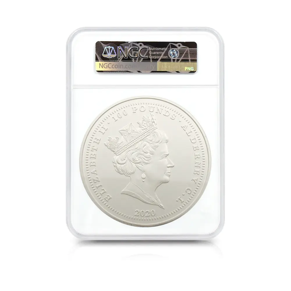 オルダニー島 2020 エリザベス2世 スリーグレーセス 100ポンド1キロ 銀貨 マットプルーフ仕上げ NGC PF69MA 箱付き
