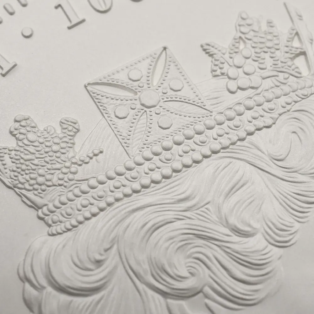 表面のエリザベス2世の肖像に見られる侵し難い気品は、裏面の「スリーグレーセス」に見られる芸術性との見事なまでの融合を果たし、見るものに深い感動をもたらします。当コインは単なるリマスターの域に留まらず、いにしえのジョージ王朝時代における王室の栄華とロイヤルミントを中心とする当時の英国貨幣界の黄金期の空気を現代に伝え、在りし日のワイオン芸術の歴史的意義を改めて強調する文化遺産としての価値を有するモダンコインの華であると言えます。