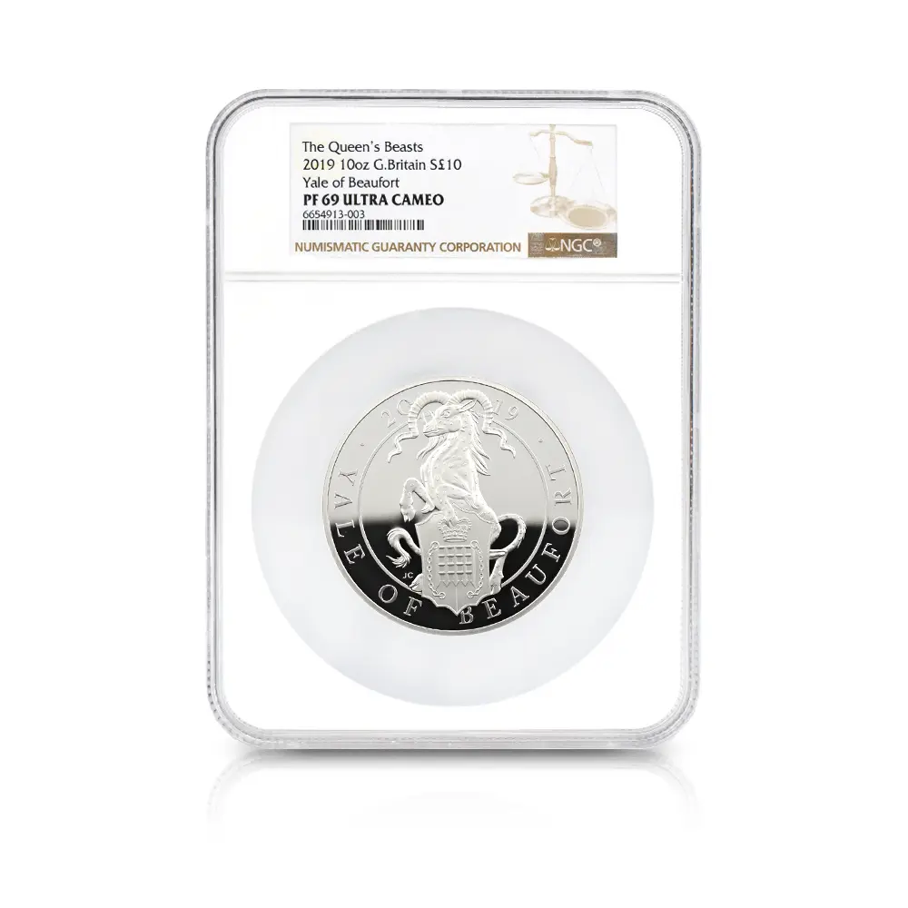 2019 エリザベス2世 クイーンズビースト ビューフォートのイェール 10ポンド10オンス銀貨 NGC PF69UC 箱付き