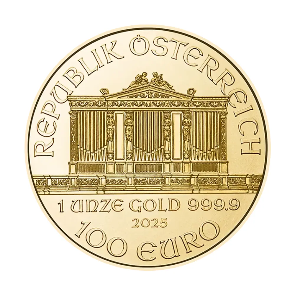 オーストリア 2025 ウィーンフィル 100ユーロ 1オンス 金貨 【1枚】 (コインケース付き)