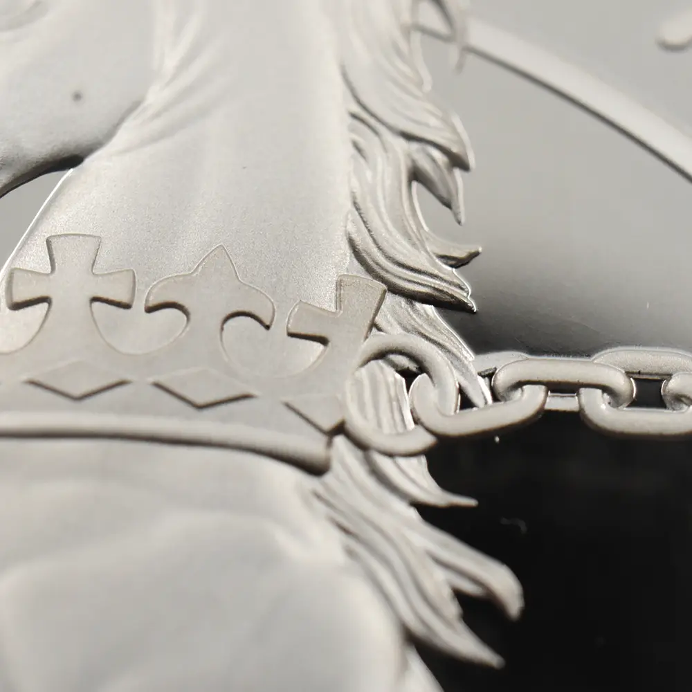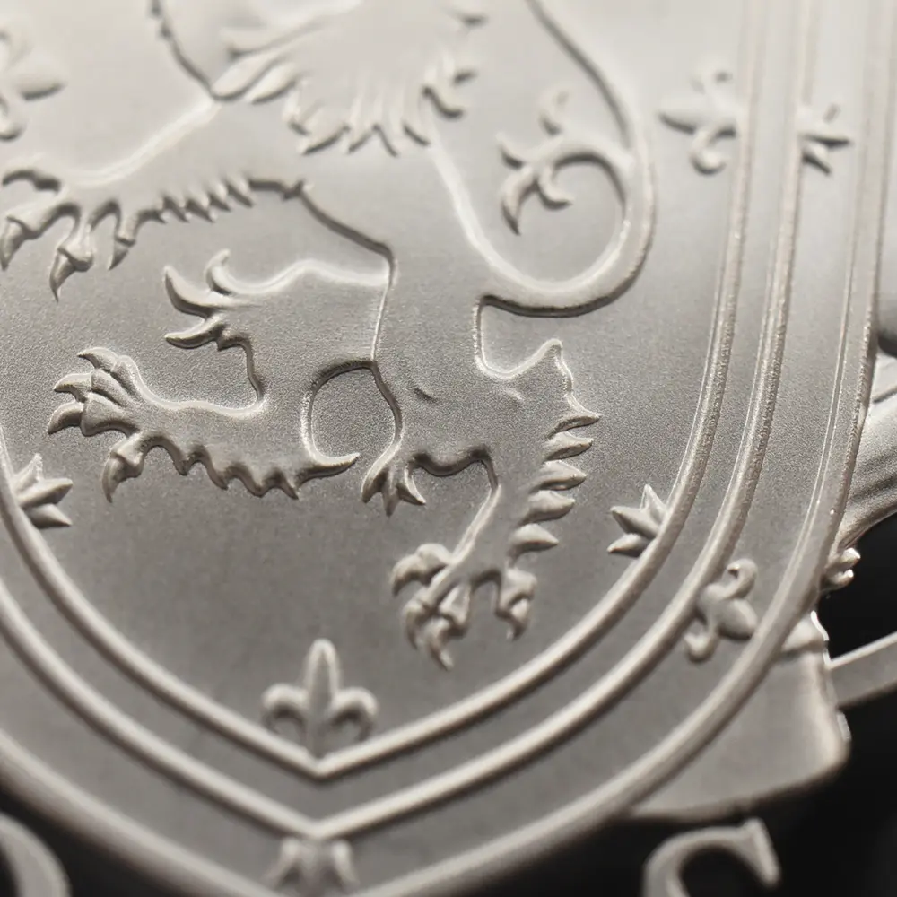 今や英国貨幣界を牽引する存在へと成長を遂げつつある実力派アーティスト、ジョディー・クラークの洗練された美意識を反映するこの優れた意匠は、古来王室と最も密接なつながりを持つ有冠のライオンの勇姿をコイン上に描写し、各界からの高い評価を獲得しました。