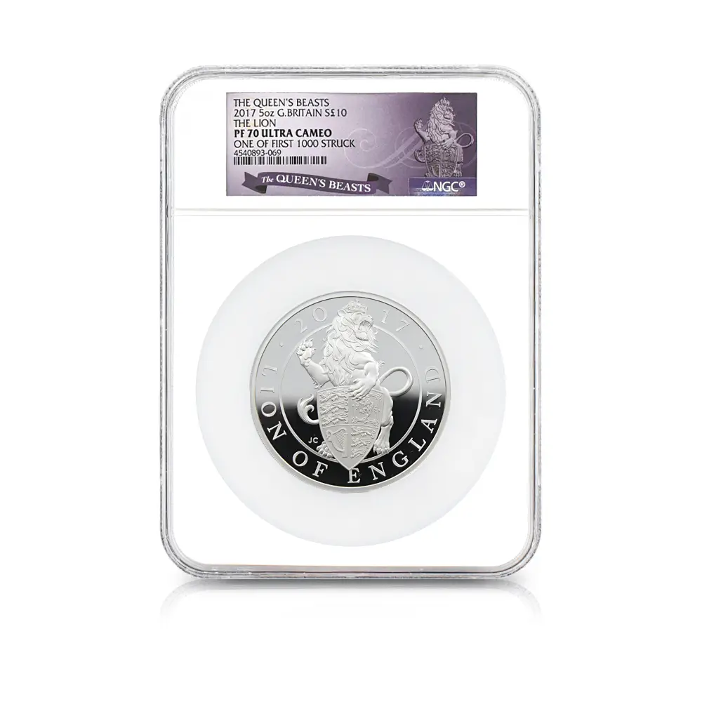 2017 エリザベス2世 クイーンズビースト イングランドのライオン 10ポンド 5オンス 銀貨 ファースト1000ストラック NGC PF70UC