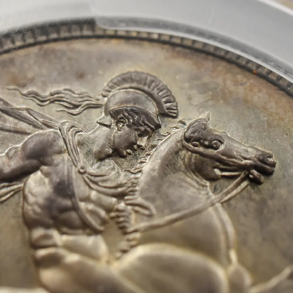 写実的かつ古典的な意匠を浮かび上がらせる極上のマットプルーフ仕上げを特徴とする歴史的コインの大作