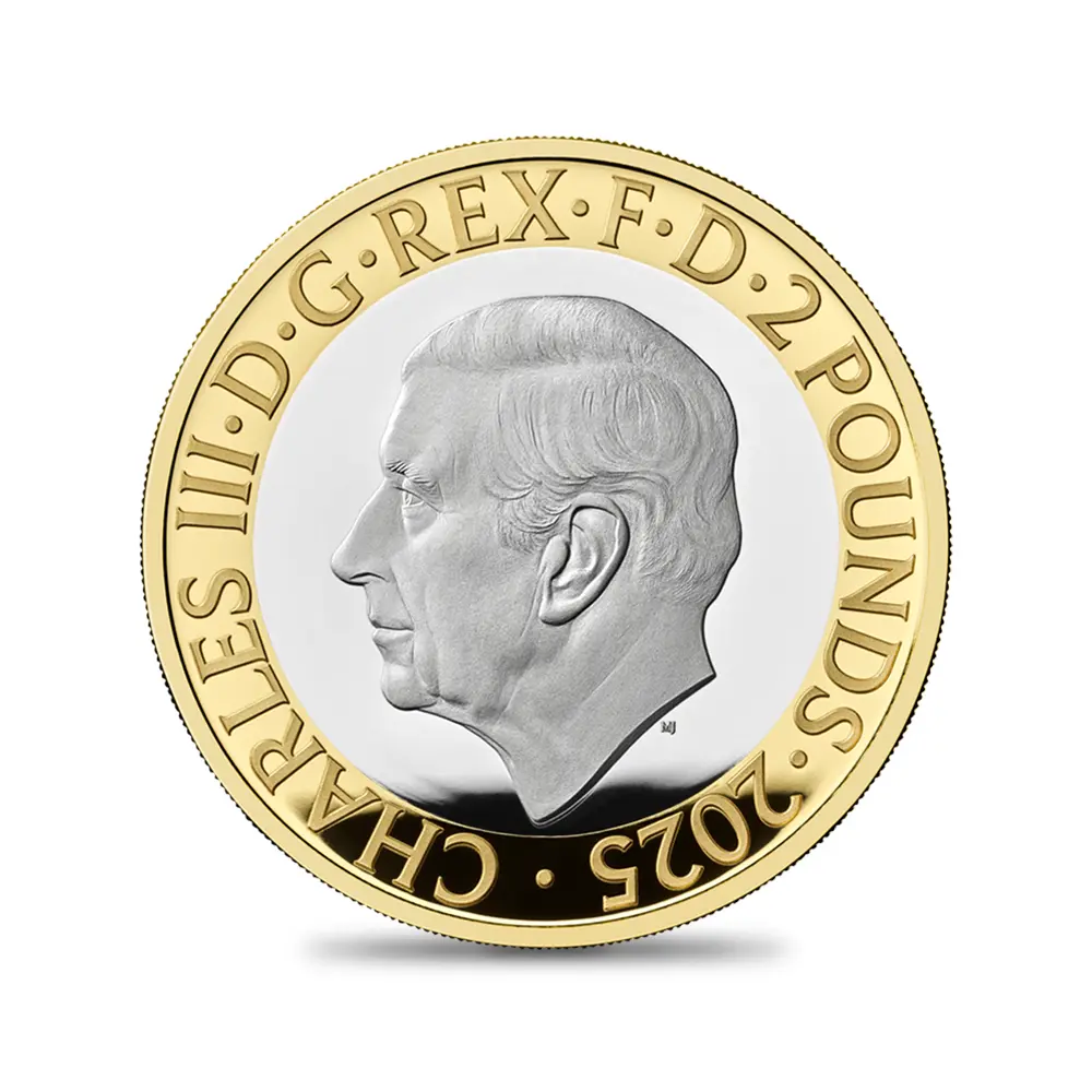 2025 チャールズ3世 ジョージ・オーウェル 2ポンドプルーフ銀貨 金メッキ付 未鑑定 箱付き【ご予約承り品】