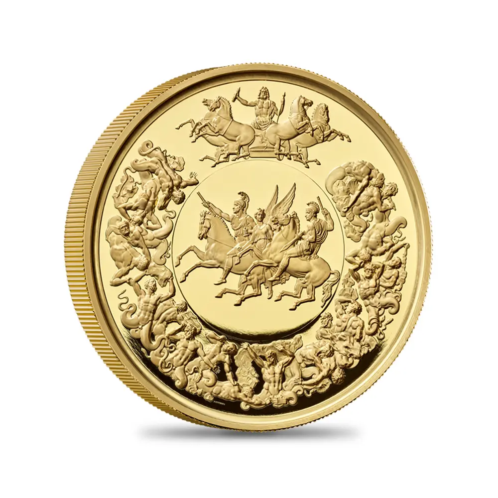 品番 5362 タイプ プルーフ 発行限定数 30 最大発行数 40 重量 156.30 g 直径 50.00 mm 品位 約99.9%Au(K24) 表面 チャールズ3世 表面 ギリシャ神話のギガントマキア 納期 お問い合わせください 英国の圧倒的勝利を再現する歴史的メダル裏面のリマスター版! -
