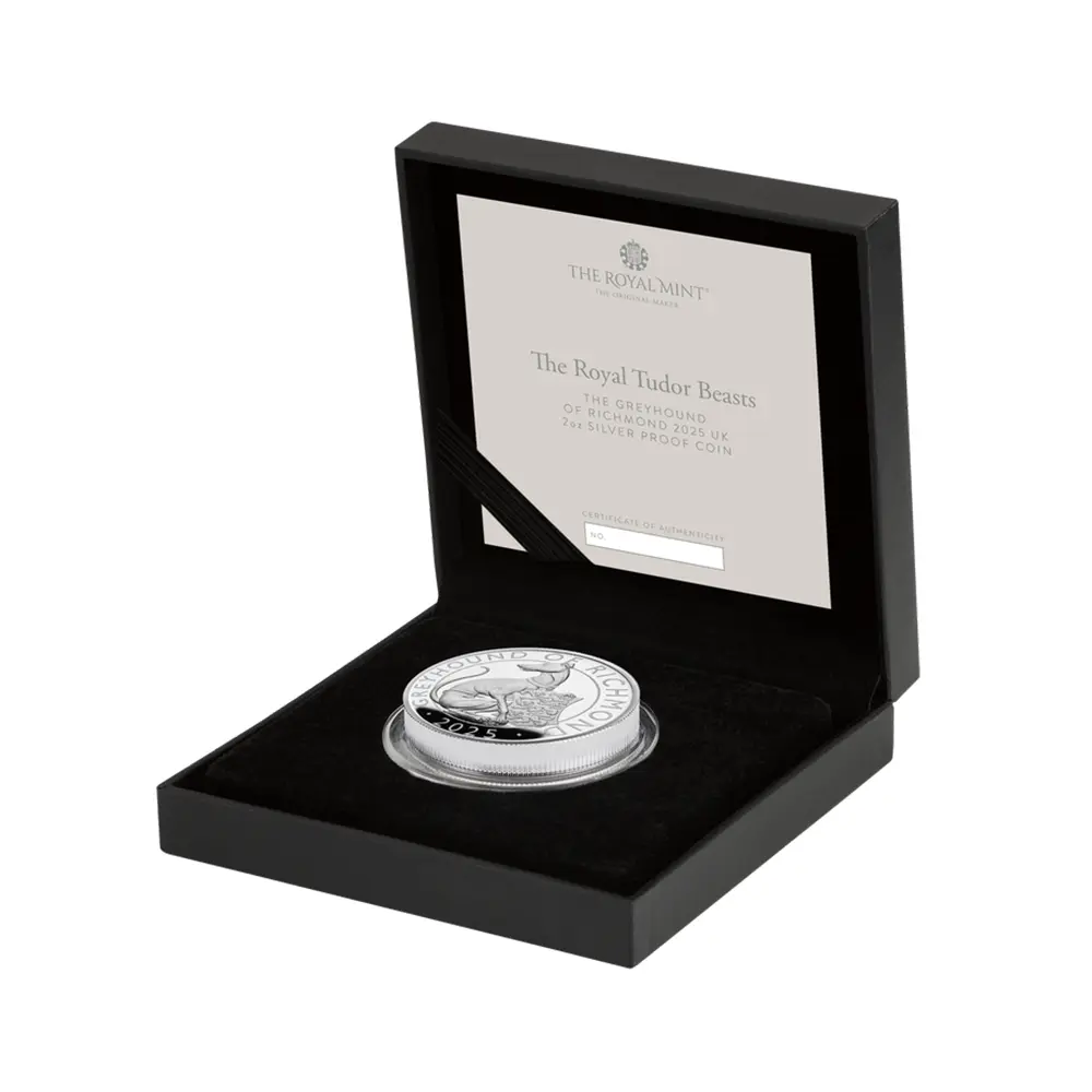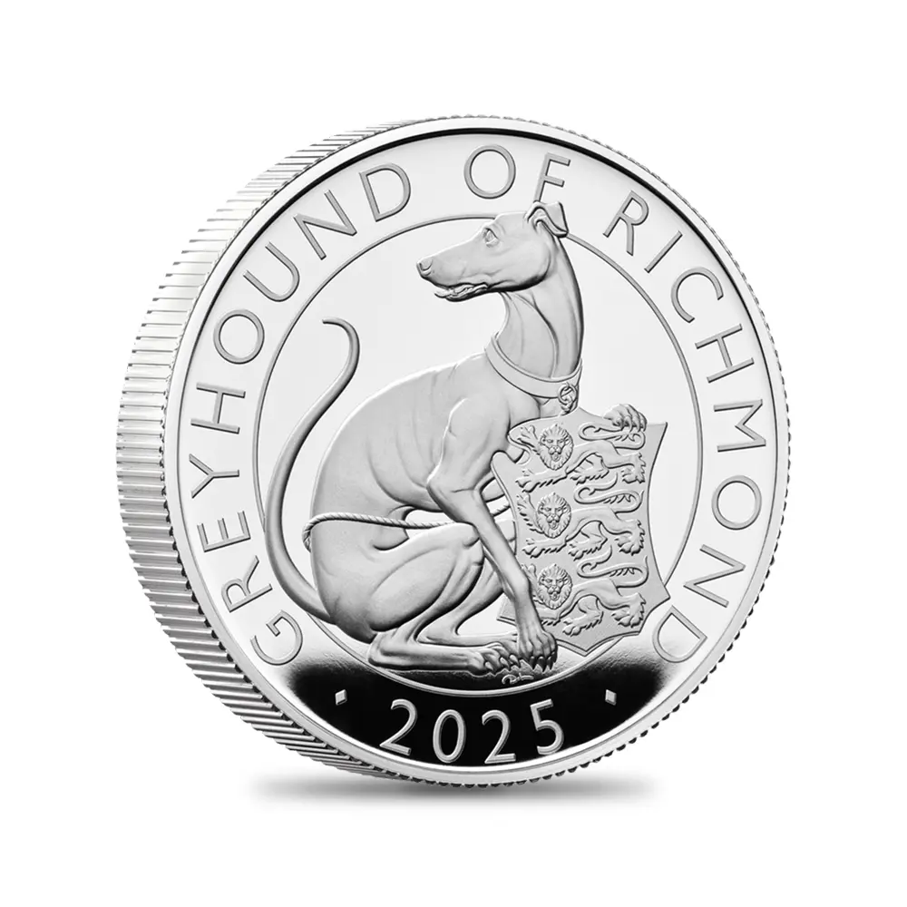 2025 チャールズ3世 ロイヤルテューダービースト リッチモンドのグレイハウンド 5ポンド2オンスプルーフ銀貨 未鑑定 箱付き【ご予約承り品】