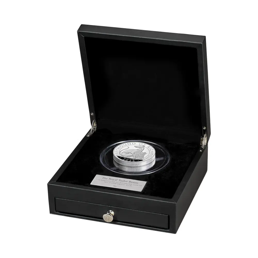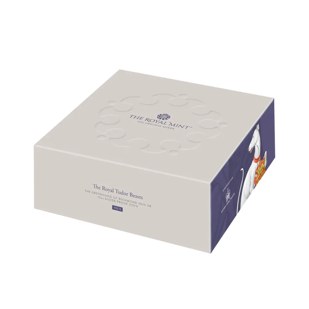 2025 チャールズ3世 ロイヤルテューダービースト リッチモンドのグレイハウンド 10ポンド10オンスプルーフ銀貨 未鑑定 箱付き【ご予約承り品】