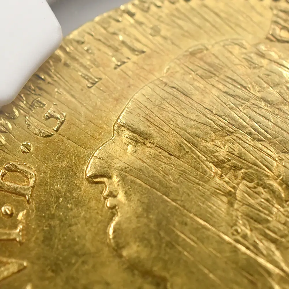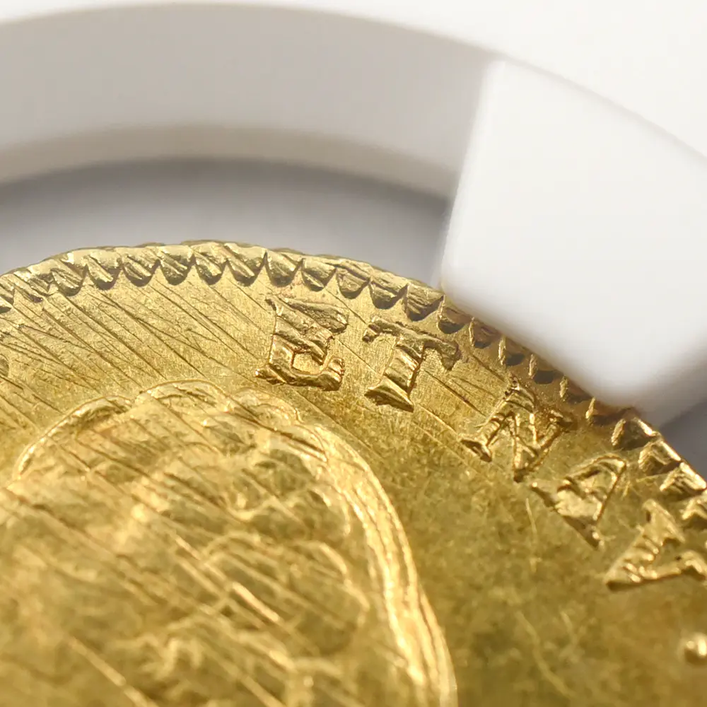 今回ご紹介のコインは、フランス・アンティーク・コインの名品とされる2ルイ・ドール金貨です。革命勃発の2年前に発行された当金貨の表面には、往時のフランス国王ルイ16世の気品あふれる横顔が描かれています。長い巻き髪の鬘を着用した左向きの国王の肖像からは、ブルボン王家による王政時代特有の古風な趣が感じられ、アンティーク・コインファンを熱狂させることでしょう。肖像の周囲には「神の恩寵によるルイ16世、フランス及びナヴァラ国王」という意味の碑文が見られ、王の崇高な身位を正当化することに貢献しています。油彩による肖像画が数多く残されているルイ16世ですが、当コインのポートレートはそれらに描かれた国王の風貌を彷彿させるに十分な写実性を感じさせるものです。そして裏面にはフランス王室ゆかりの二つのシンボルが2分割された盾形の紋章の中に収められています。また上部の大型の宝冠はブルボン家によって代々受け継がれてきた王室の権威を物語っています。2世紀以上もの長大な年月を生きながらえてきた正真正銘のアンティーク・コインの傑作をどうぞ手に取ってご堪能ください。