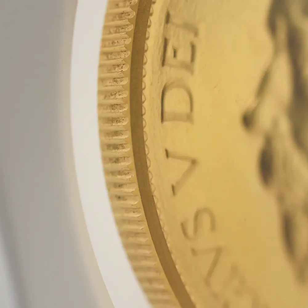 その荘厳極まりない戴冠式の記念すべき年に発表された当コインは格別の趣で、表面に描かれた左向きのジョージ五世のポートレートは国王の堂々たる風格を感じさせる絶品です。重厚感のある王の肖像を囲むのはラテン語による格調高い碑文で、「神の恩寵によるグレートブリテン国王ジョージ五世。