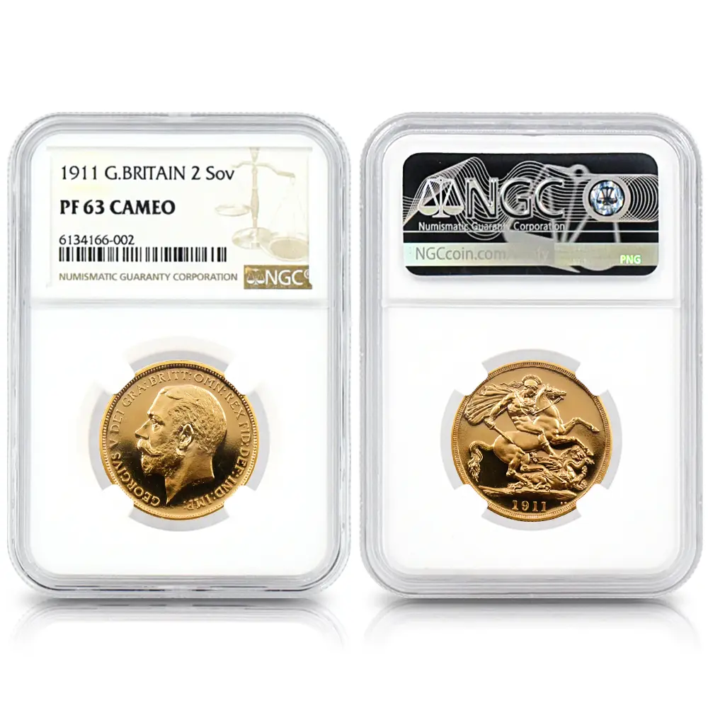 1911 ジョージ5世 聖ジョージ竜退治 2ソブリン金貨 PF 63 CA