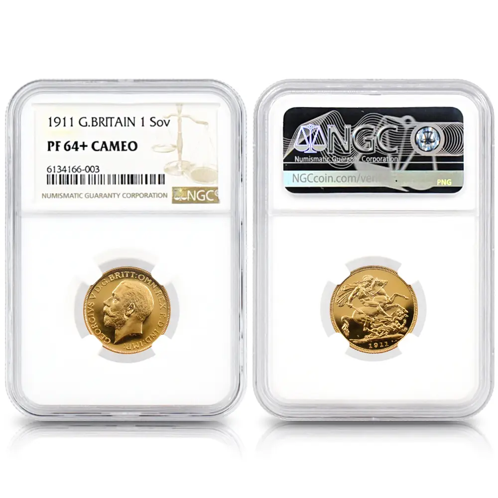 1911 ジョージ5世 聖ジョージ竜退治 ソブリン金貨 PF 64+ CA