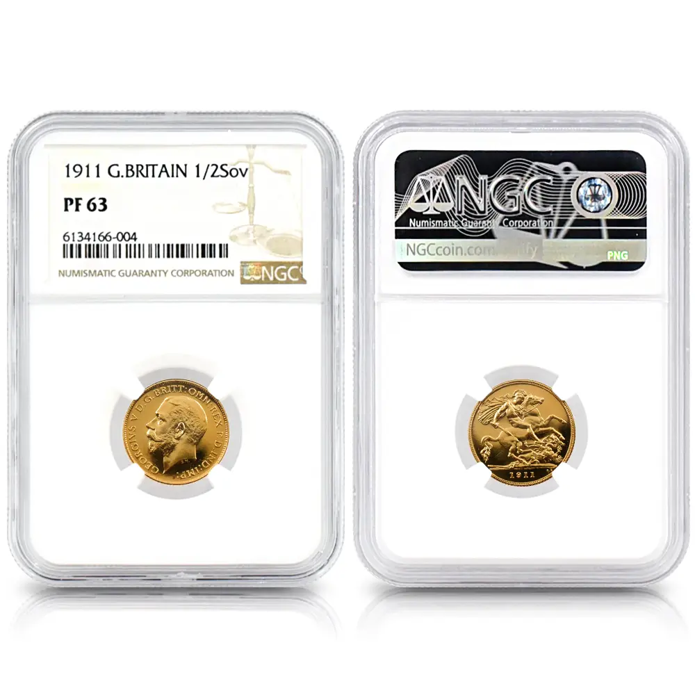 1911 ジョージ5世 聖ジョージ竜退治 1/2ソブリン金貨 PF 63