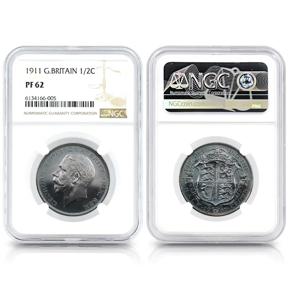 1911 ジョージ5世 1/2クラウン銀貨 PF 62