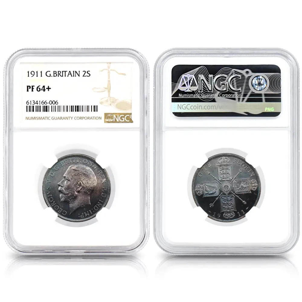 1911 ジョージ5世 2シリング銀貨 PF 64+