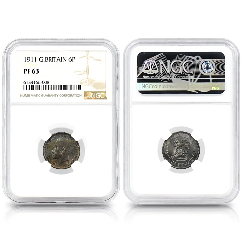 1911 ジョージ5世 6ペンス銀貨 PF 63