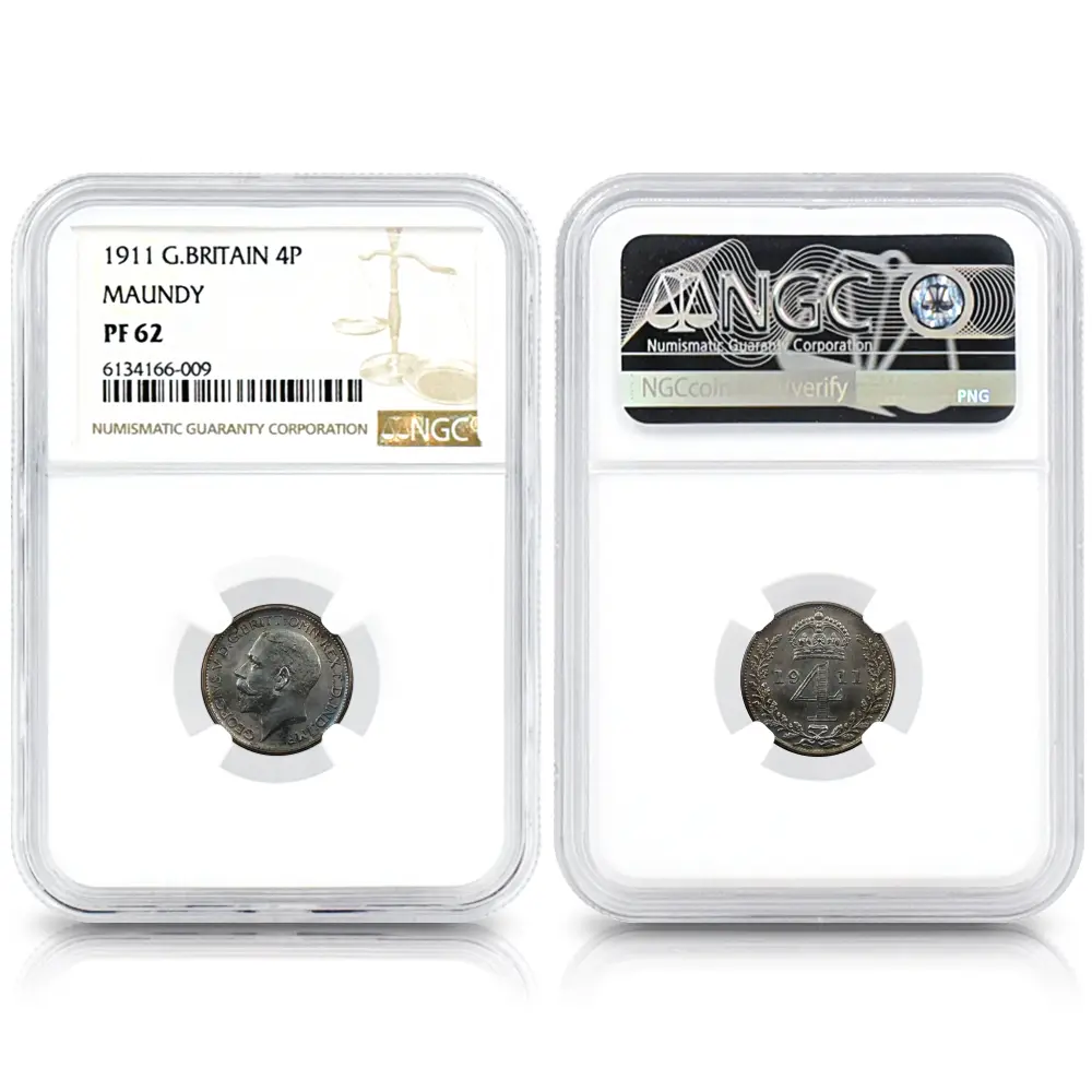 1911 ジョージ5世 モーンディ 4ペンス銀貨 PF 62