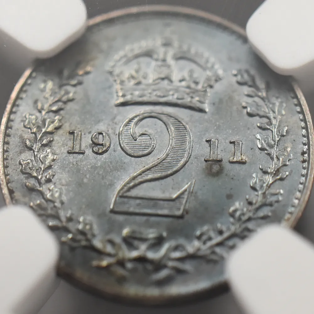 1911 ジョージ5世 モーンディ 2ペンス銀貨 PF 62