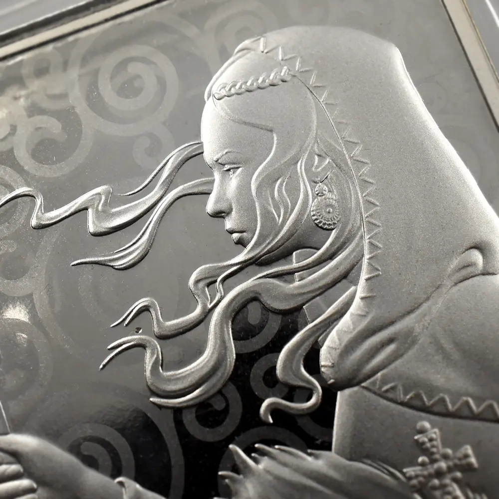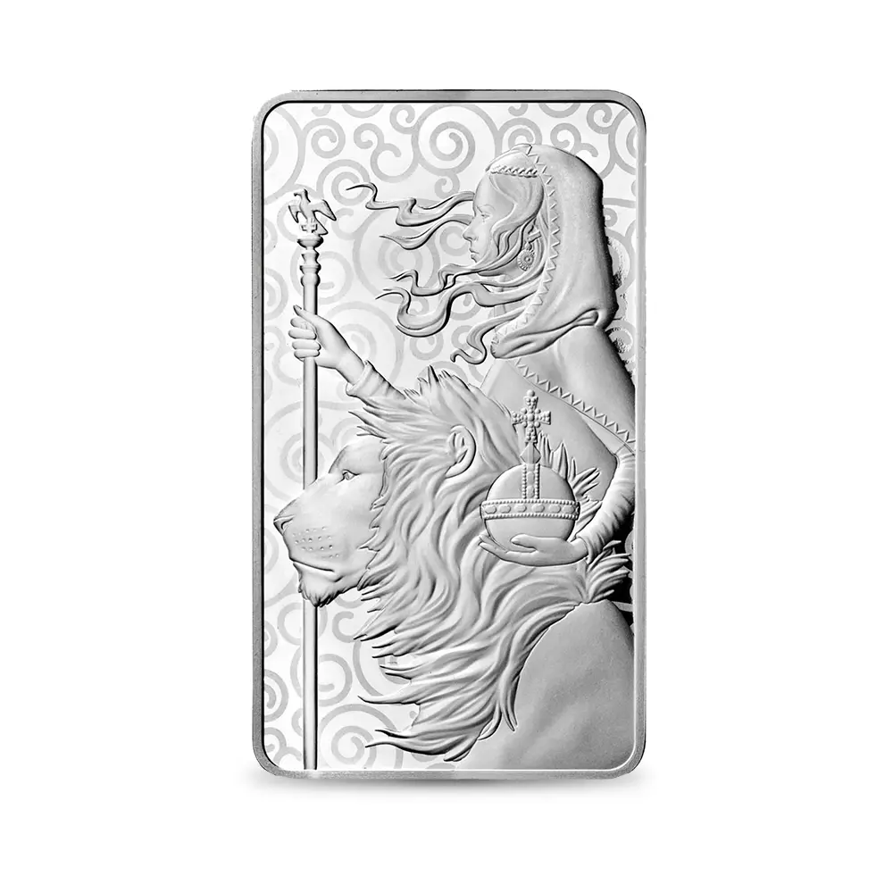 この延べ板のコレクションは、ヴィクトリア女王の治世に活躍したウィリアム・ワイオンによって英国コインに新しくもたらされたデザイン「ウナとライオン」で始まります。このクラシカルなデザインを元にしたジョディ―・クラークによる全く新しい解釈は、君主の象徴である宝珠を掲げる柔和なウナとその横で対峙するライオン、そして未来をしっかりと見つめる双方の眼に焦点を当てています。