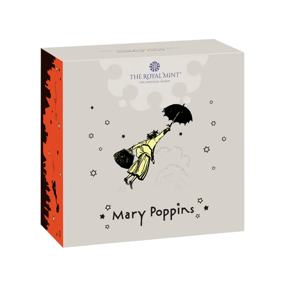 1964年にアメリカ合衆国で初公開されたウォルト・ディズニー社の制作による実写アニメーション・ミュージカル・ファンタジー版「メリー・ポピンズ」は。1964年度の最高興行収益を記録し高く評価されました。 アカデミー賞では、作品賞を含む全13部門にノミネートされ、ジュリー・アンドリュースの主演女優賞を始め、編集賞、作曲賞、視覚効果賞、主題歌賞の5部門にて受賞します。また2013年にはアメリカ議会図書館によって「文化的、歴史的、美学的に重要な作品」に指定され、アメリカ国立フィルム登録簿に永久保存されることが決定します。ウォルト・ディズニーによる実写作品の最高傑作とされているこの映画版は、ディズニー氏の存命中にアカデミー・作品賞にノミネートされた唯一の作品でもあります。今回は、この歴史的な児童文学の大作を取り上げる初のモダンコインのご紹介となります。コイン裏面には、こうもり傘を差したメアリー・ポピンズが、大きな鞄を携えて地上に降り立つ象徴的な冒頭シーンが極彩色によって再現されていて見応えがあります。イギリス人を始め、世界中の人々に愛されたメアリー・ポピンズの世界観を象徴するこの名デザインは、物語を知らずとも万人に受け入れられることでしょう。コイン表面には、2022年に英国王位を継承した現国王チャールズ3世の「公式第1コイン肖像」が描かれています。21世紀以降に制作された全てのコイン肖像の頂点に輝くこの秀麗な作品は、一人の人間としての国王の超自然な横顔を金属上に浮き彫りにする傑作として高い人気を誇っています。当コインを手に、イギリスの風土と国民性を反映する「メリー・ポピンズ」の奥深い世界を心行くまでお楽しみください。