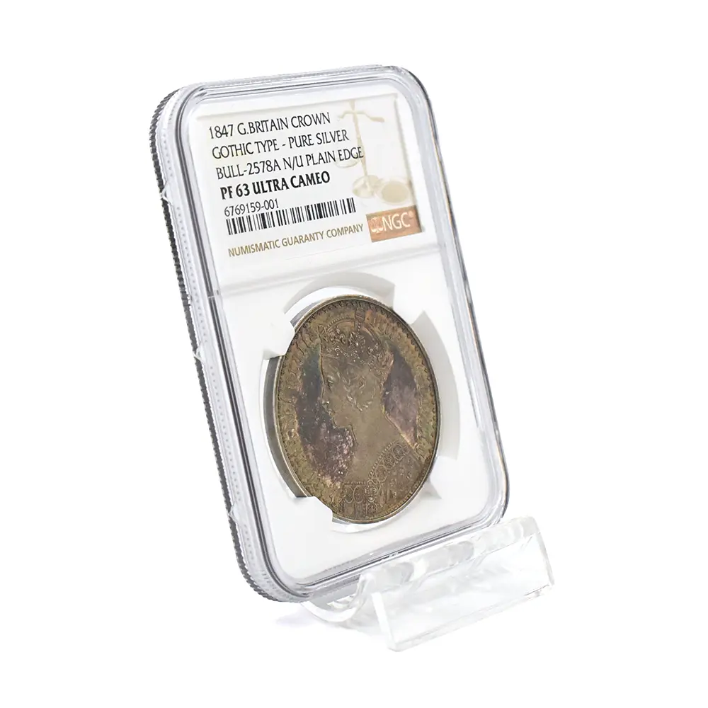 1847 ヴィクトリア女王 ゴチッククラウン銀貨 プレーンエッジ 純銀タイプ NGC PF63UC BULL-2578A N/U【R4】