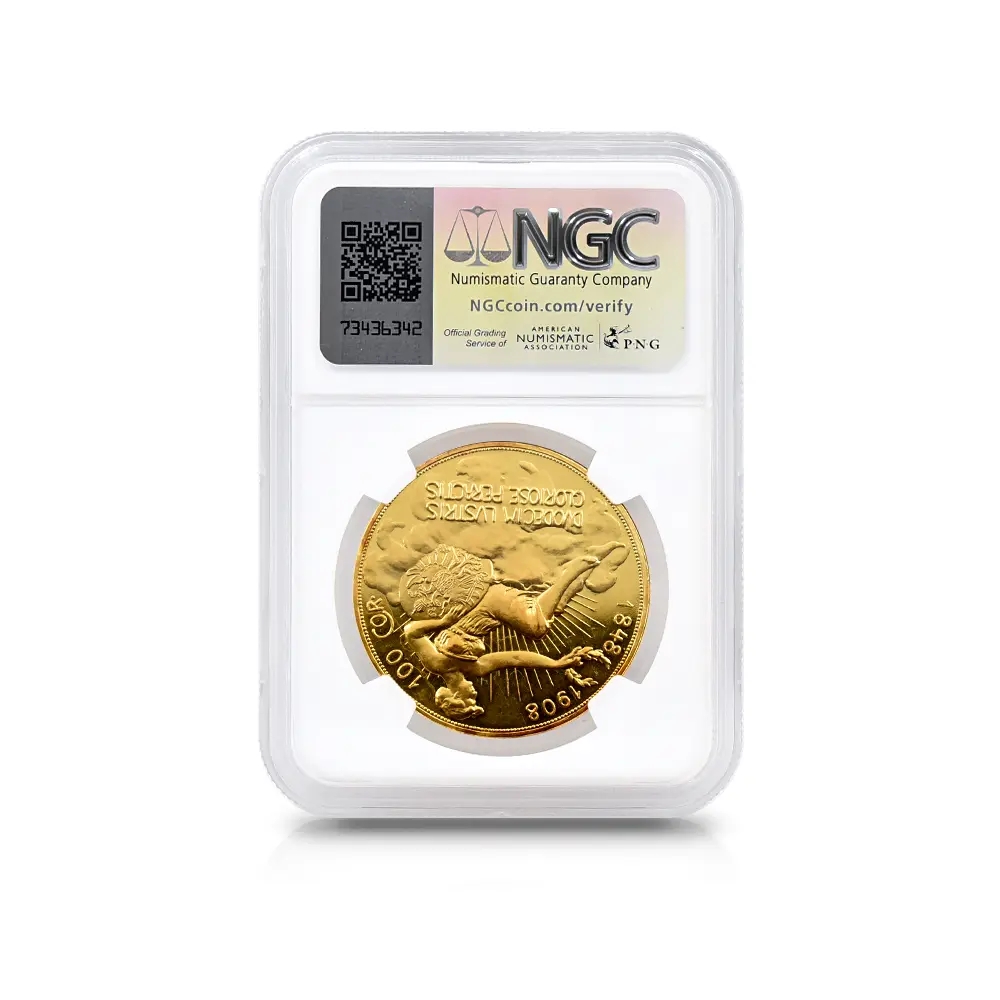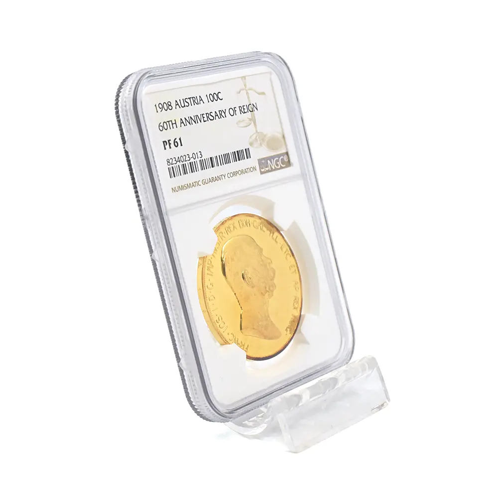 オーストリア 1908 フランツ・ヨーゼフ1世 皇位60周年記念 雲上の女神 100クローネ金貨 NGC PF61