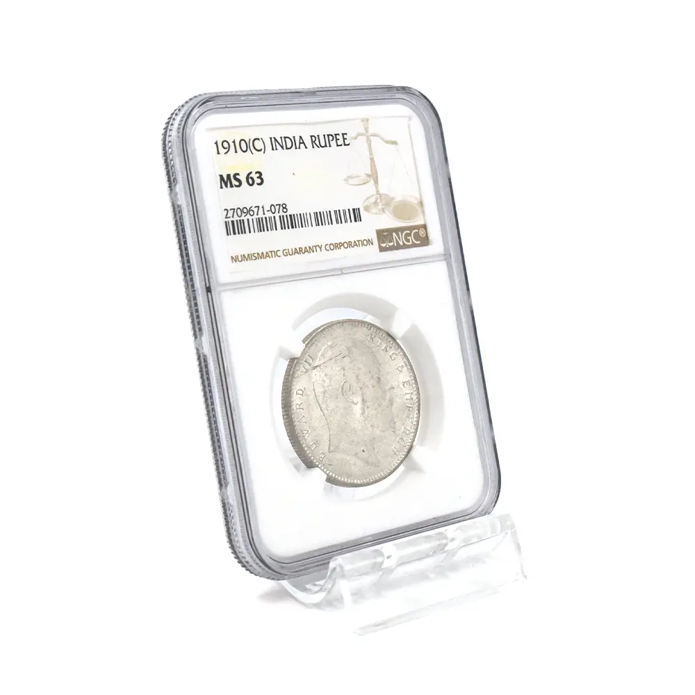 英領インド 1910C エドワード7世 ルピー銀貨 NGC MS63