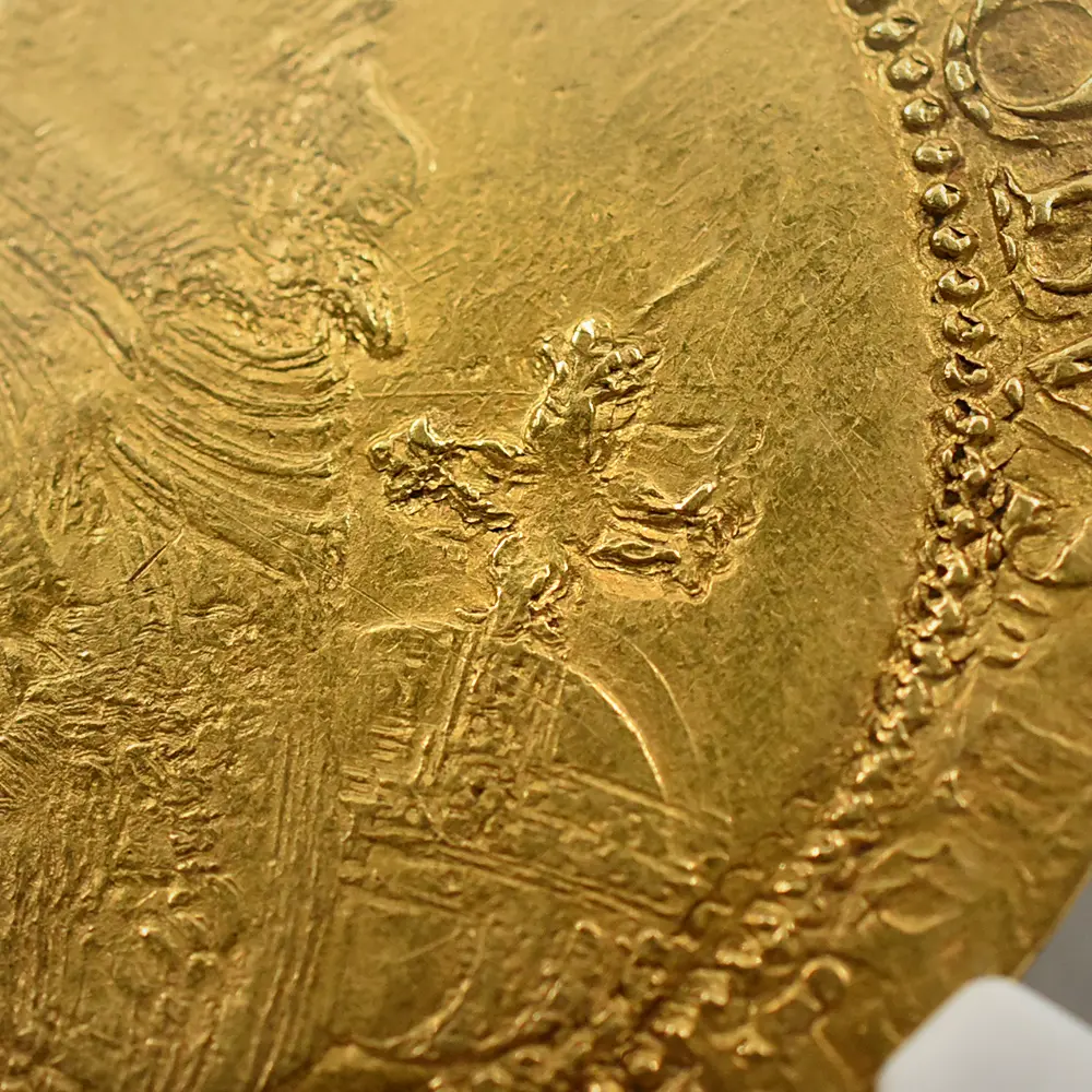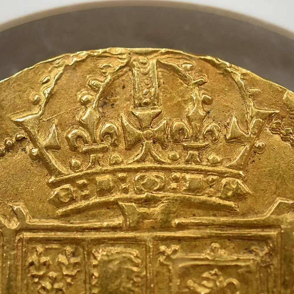 ジェームズ1世の治世以降、息子のチャールズ1世、共和政時代のオリバー・クロムウェル、またチャールズ2世の時代まで4代にわたって受け継がれていました。しかし、1663年に英国王立造幣局によってハンマー打ち式から機械打ち式へとコイン製造の手法が変更されたこと、また同年に新たな法定金貨「ギニー」が誕生したため、その製造は遂に中止されることになります。25年間に及んだジェームズ1世の在位期間に貨幣としての最大の収穫となったユナイト金貨の歴史的重厚感を是非ともお手に取ってご堪能ください。