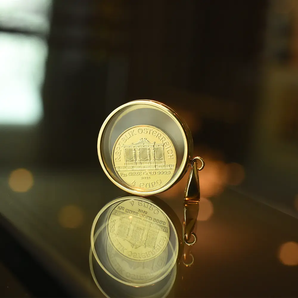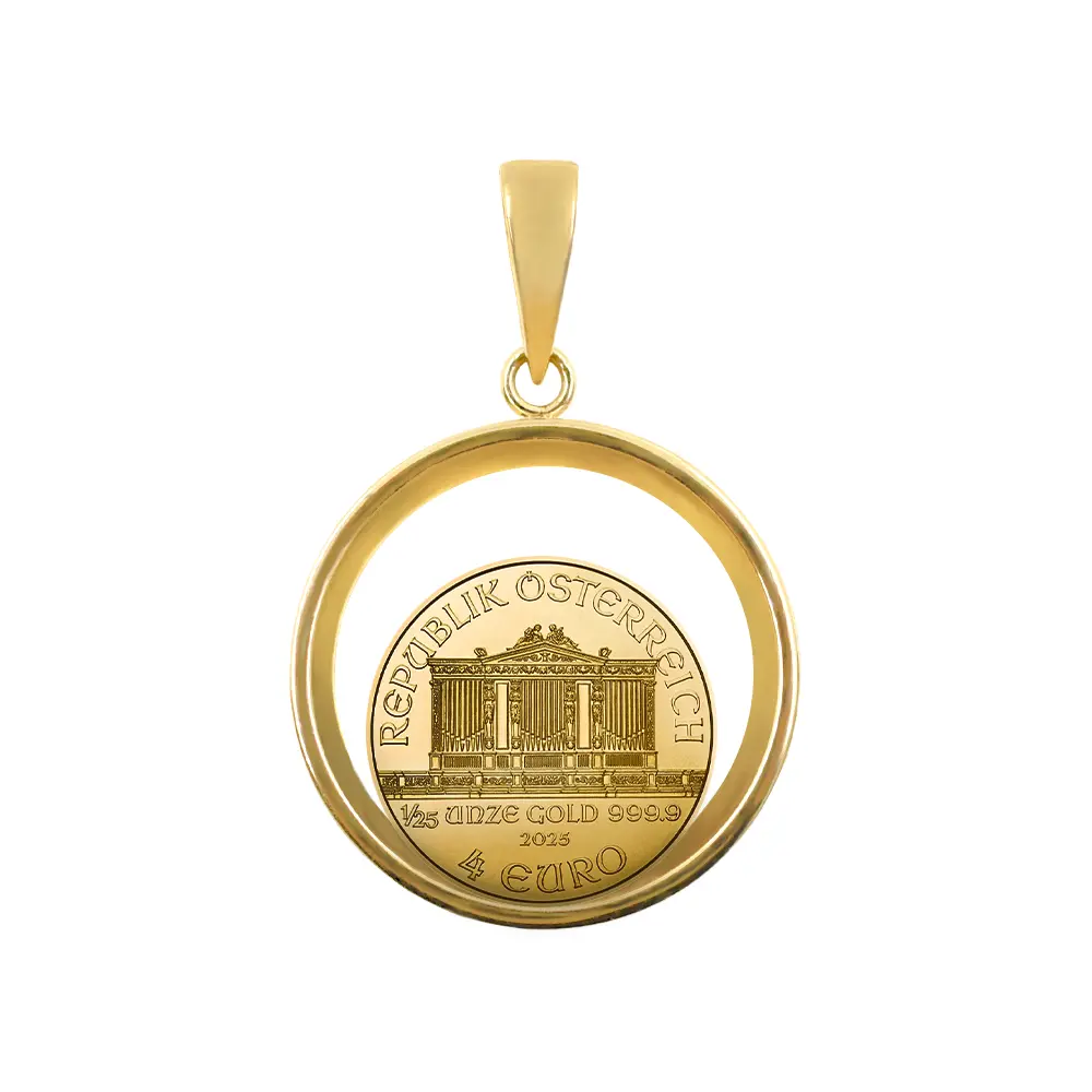 【ペンダントトップ単品】オーストリア 2025 ウィーンフィル 4ユーロ 1/25オンス 金貨 コインペンダント