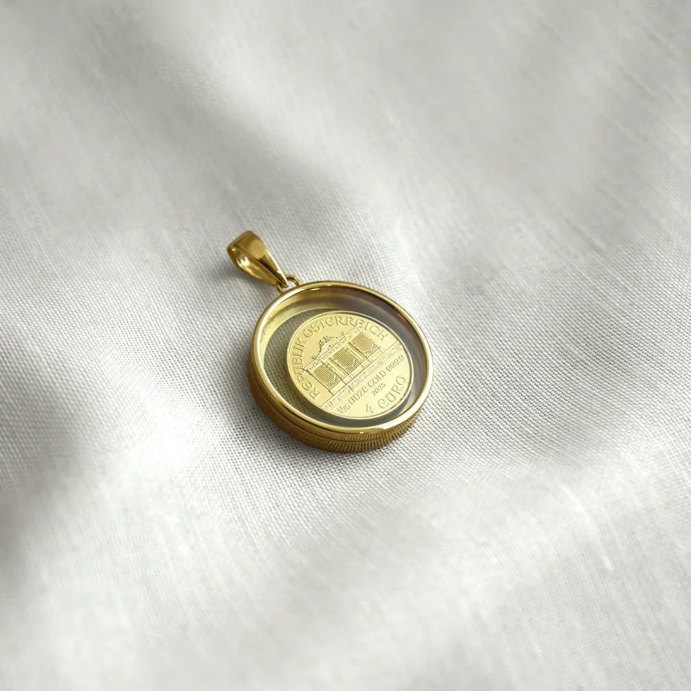 【ペンダントトップ単品】オーストリア 2025 ウィーンフィル 4ユーロ 1/25オンス 金貨 コインペンダント 純金 ガラス フローティング コインネックレス 24K