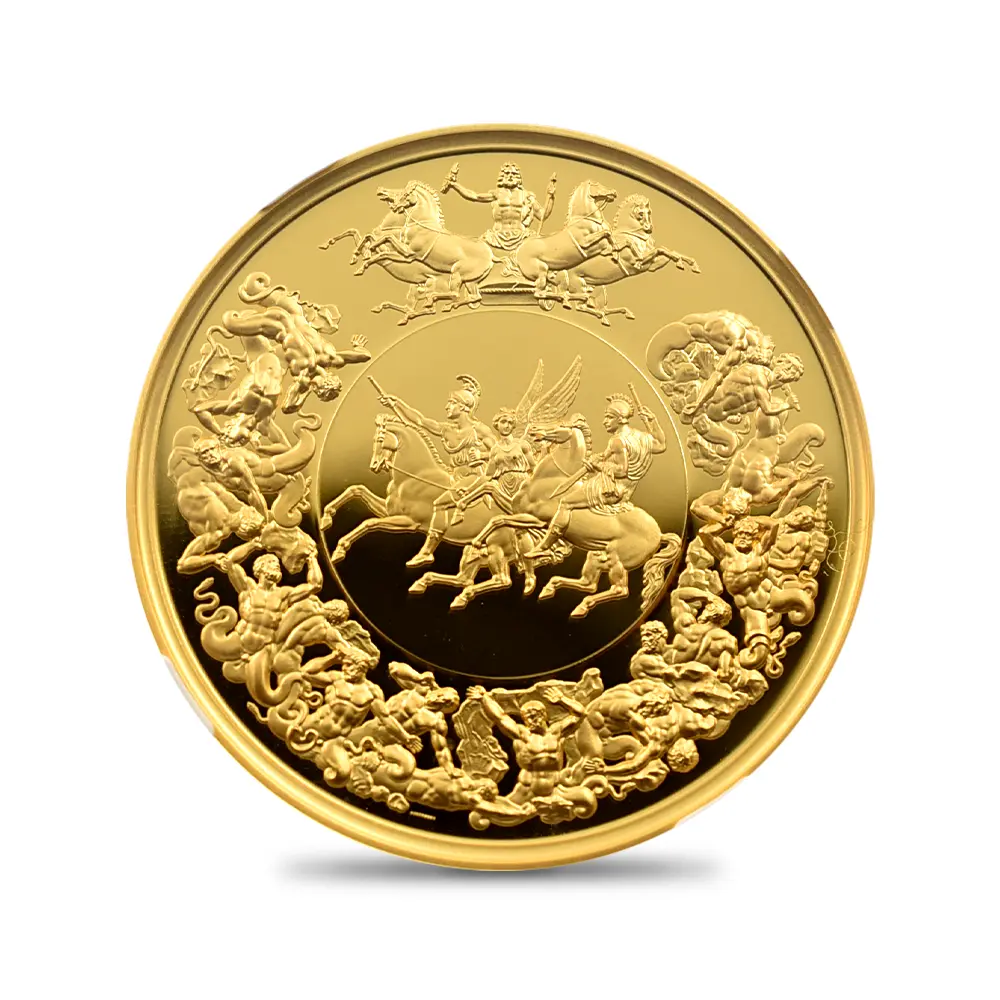 品番 5915 グレード数 69 発行限定数 195 最大発行数 221 重量 62.42 g 直径 40.00 mm 品位 約99.9%Au(K24) 表面 チャールズ3世 表面 ギリシャ神話のギガントマキア 発送元 日本国内から発送 納期 お問い合わせください 英国による歴史的快挙を永遠に刻む復刻版