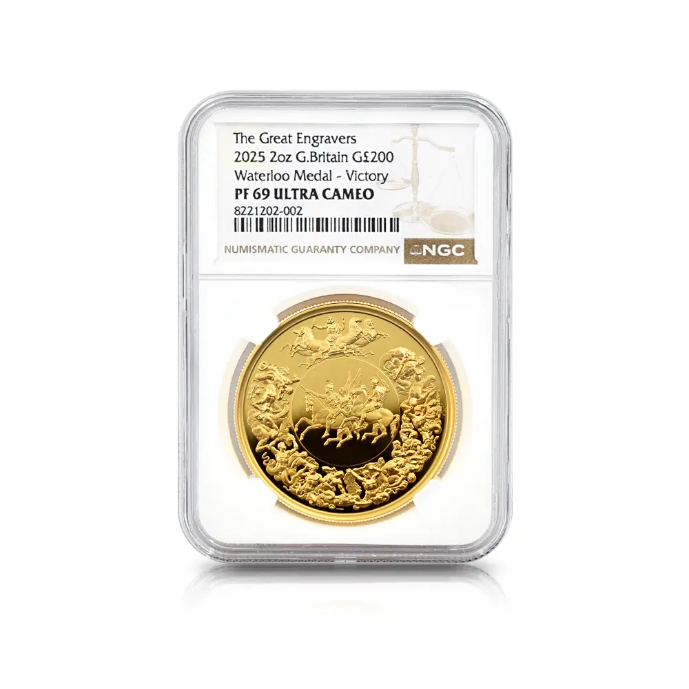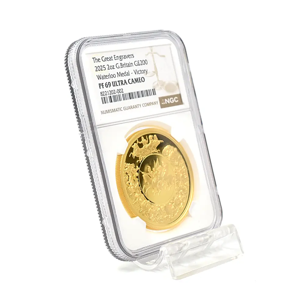 2025 チャールズ3世 ワーテルロー・メダル - 勝利 200ポンド2オンス金貨 NGC PF69UC 箱付き