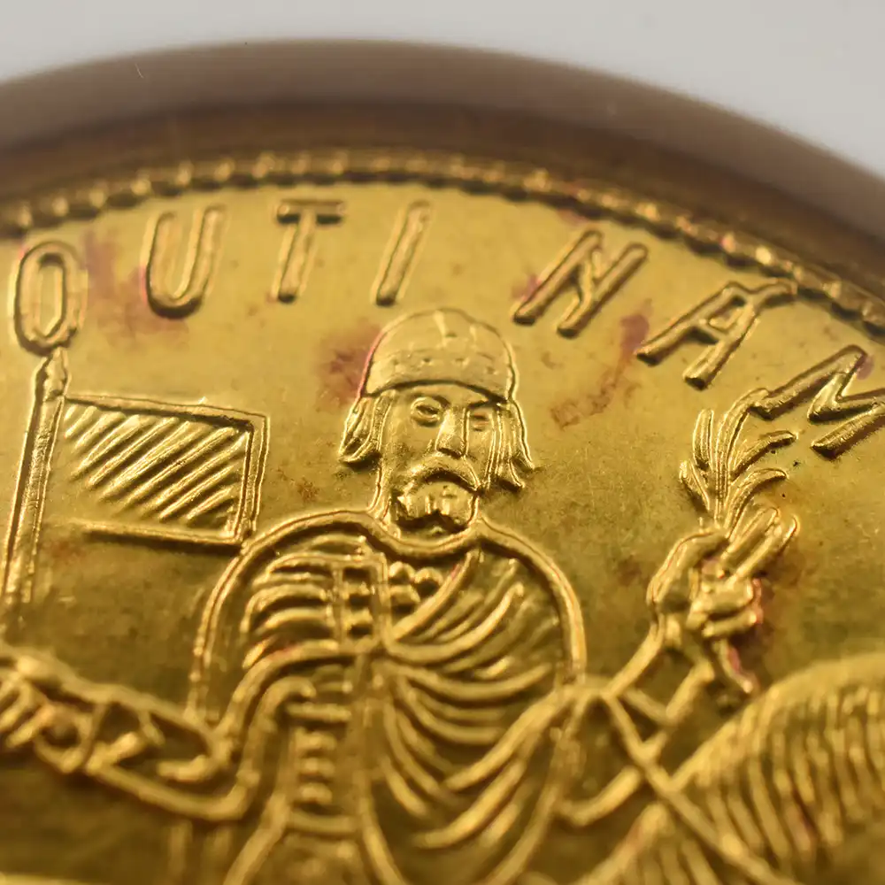 1918年から1992年までの間、中央ヨーロッパに存在した連邦国家チェコスロバキア。同国は現在のチェコ共和国とスロバキア共和国によって構成されていました。ある種の共同体ともいえる二国の関係は、トマーシュ・マサリクやエドヴァルド・ベネシュが提唱したチェコ人とスロバキア人の国家は統一されるべきであるというチェコスロバキア主義に基づいていました。1918年の建国当初は現在のウクライナの一部であるカルパティア・ルテニアも領土に含まれていたことは意外と知られていない事実です。同国の首都は現在のチェコの首都でもあるプラハで、国旗もまた現在のチェコ共和国と同じものが使用されていました。また1948年以降、チェコスロバキア共産党の事実上の一党独裁制によってソビエト連邦に類似する社会主義国となり、1960年には「チェコスロバキア社会主義共和国」が正式名称となり、社会主義が崩壊する1989年まで用いられていました。1989年に勃発したビロード革命による共産主義体制の崩壊を契機として二国の分離の動きが加速し、1993年1月1日、チェコスロバキアは連邦制を解消してチェコ共和国とスロバキア共和国に分離し、チェコスロバキア共和国の解体に繋がります。今回ご紹介させていただくコインは、共産主義時代のチェコスロバキアが発行した10ドゥカート金貨です。中世後期から20世紀後半にかけてヨーロッパ全土で使用されていた国際通貨として知られるドゥカートは、同時期を通じて多種多様な金属を用いて製造されていたため様々な貨幣が存在しました。それらの中でもヴェネツィア共和国のドゥカート金貨は名高く、中世のヒュペルピュロンやフローリン、もしくはイギリスのポンドやアメリカのドルなどのような国際通貨として、特に交易の決済用通貨として広く用いられていました。「ドゥカート」という語は中世ラテン語で公爵や公爵領を意味する「ducatus」を語源とします。この名称によって最初の金貨が発行されたのは、シチリア王ルッジェーロ2世統治下のプッリャ公国(公爵領)であったと考えられます。1140年代に鋳造されたこの最初期のドゥカートには「主よ、汝が治めるこの領地を汝に捧げん」という意味の碑文が刻まれていました。ヴェネツィア共和国のドージェ、エンリーコ・ダンドロはこのルッジェーロ2世の硬貨から影響を受けたドゥカート銀貨を導入しましたが、ヴェネツィアにおけるドゥカート金貨の重要度の増大から、「ドゥカート」という語がこれらの金貨のみを指すようになり、代わりに銀貨は「グロッソ」と呼ばれるようになります。コイン表面には堂々たる馬上の公爵が描かれており、芸術性豊かな表現力に圧倒されます。そして裏面には左向きのライオンを描く盾形の紋章が挿入されていますが、これもまた格調高く表現されており、国際通貨として当時幅広く用いられていたドゥカート金貨ならではの安定感のあるクオリティーを保証します。20世紀後半には世界の市場から忽然と姿を消したドゥカート金貨ですが、それ故にアンティーク市場においては珍重される傾向があります。かつてのヨーロッパ市場を席巻した輝かしい歴史を誇るドゥカート金貨ですが、共産主義時代のチェコスロバキア版というのは大変珍しく、今日極めて得難いアンティークコインの一枚とされています。どうか当コインを片手に、激動の20世紀ヨーロッパ史に思いを馳せてみてはいかがでしょうか。