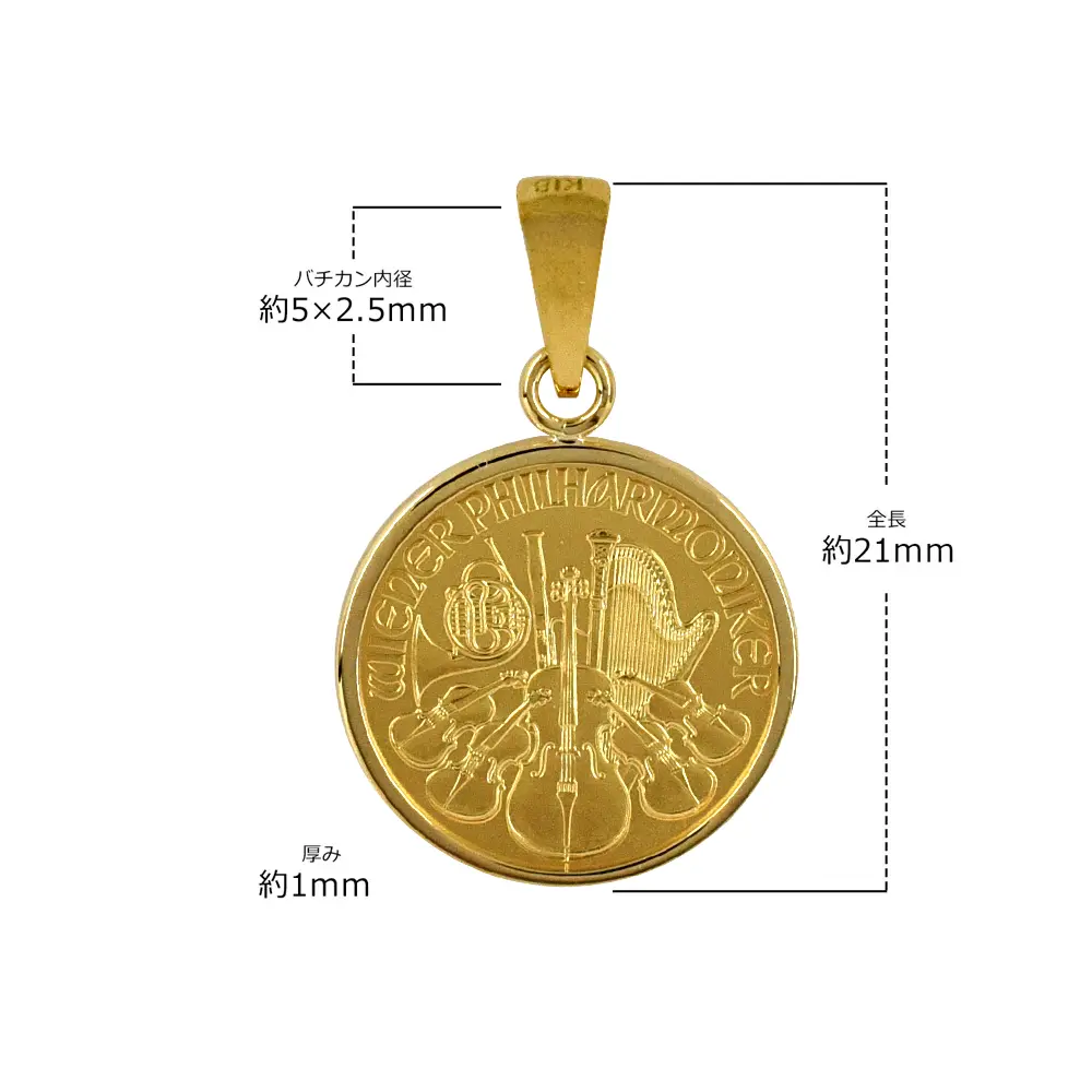伝統と格式のオーストリア造幣局が世界に贈る地金型コインの最高傑作「ウィーンフィル金貨」。今回はこの地金型コインの名デザインをアクセサリーとして気軽に身に着けることを想定して考案されたペンダント・トップを皆様にご紹介させていただきます。まずコイン裏面にはハープやヴィオラを始めとするオーケストラを構成する管弦楽器がバランスよく配置されています。そして表面には、ニューイヤーコンサートの会場として有名なウィーン楽友協会黄金の間正面の巨大なパイプオルガンがデザイン化されていて壮観です。当会場の木造建築ならではの音響効果の素晴らしさはよく知られており、ニューヨークのカーネギーホールやアムステルダムのコンセルトヘボウと並んで「世界三大コンサートホール」の一つと目されている所以でもあります。テレビ中継によるニューイヤーコンサートを観ながら過ごす元日は、人生を彩る優雅なひと時として国際的に定着しつつあります。現地ウィーンの会場では全世界から集結したウィーンフィルのパトロンがシュトラウス一家の楽曲を中心とするプログラムに酔いしれ、時の経つのを忘れて感動を共有します。ヨハン・シュトラウスのワルツ「美しき青きドナウ」の優美と、アンコール最終曲「ラデツキー行進曲」の手拍子によってクライマックスを迎える例年のニューイヤーコンサートですが、その感興をコイン表裏に投映し、音楽を肌で感じる喜びを実感させるこの地金型ペンダントは、美をこよなく愛する世の全ての人々に贈られるべき究極の芸術作品に他なりません。実物資産としての価値とアクセサリーとしての機能性を兼ね備えた当作品は、音楽の都が世界に誇るウィーンフィルの無限の音色美をコイン上に再現する意欲的なアクセサリーとして、今後、絶対的評価を確立することと思われます。