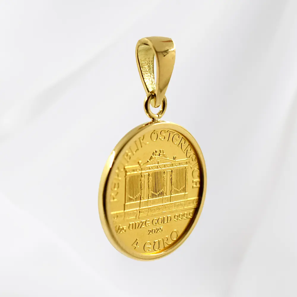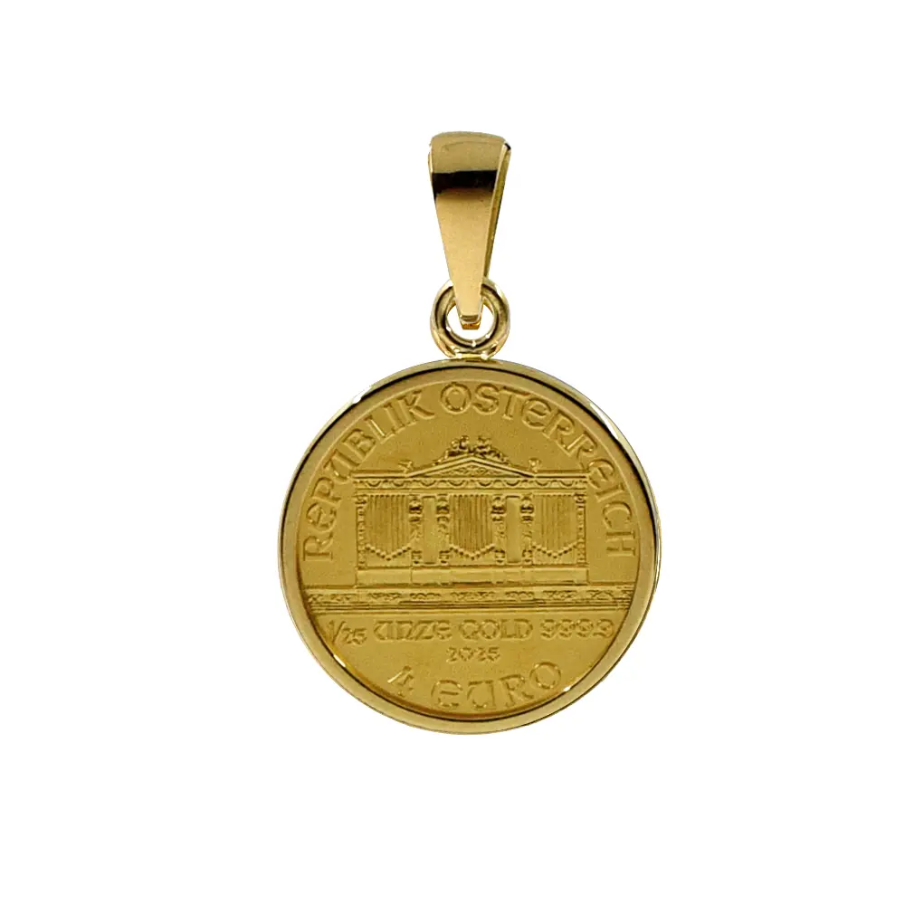【ペンダントトップ単品】オーストリア 2025 ウィーンフィル 4ユーロ 1/25オンス 金貨 コインペンダント